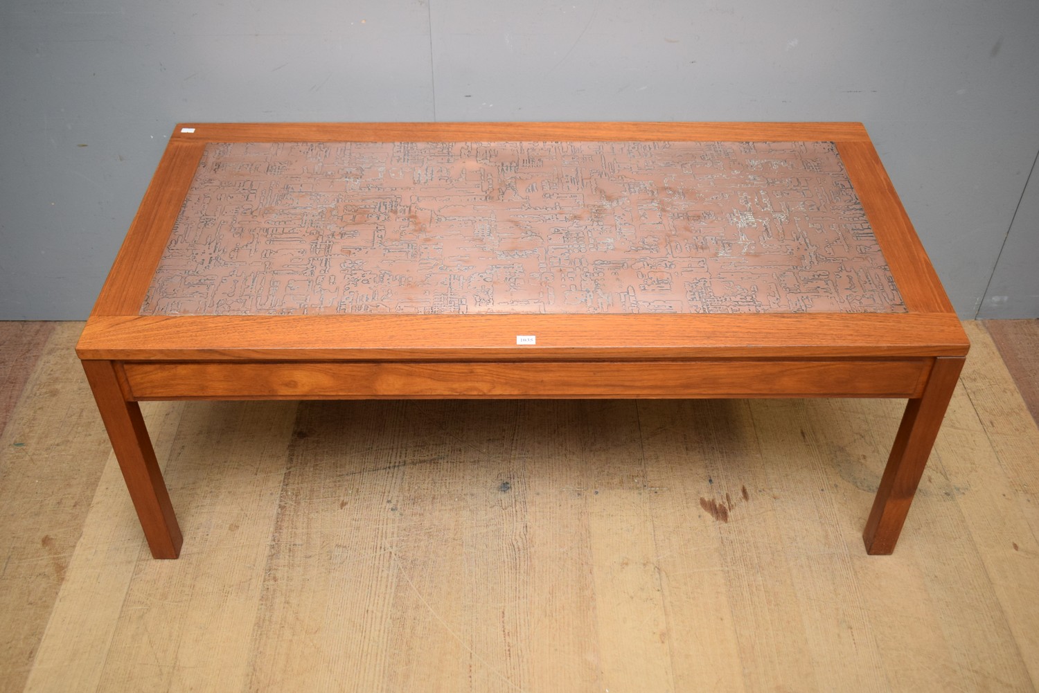 A DANISH COFFEE TABLE WITH PRESSED COPPER TOP (47H x 122W x 60D CM) (LEONARD JOEL DELIVERY SIZE: MEDIUM)