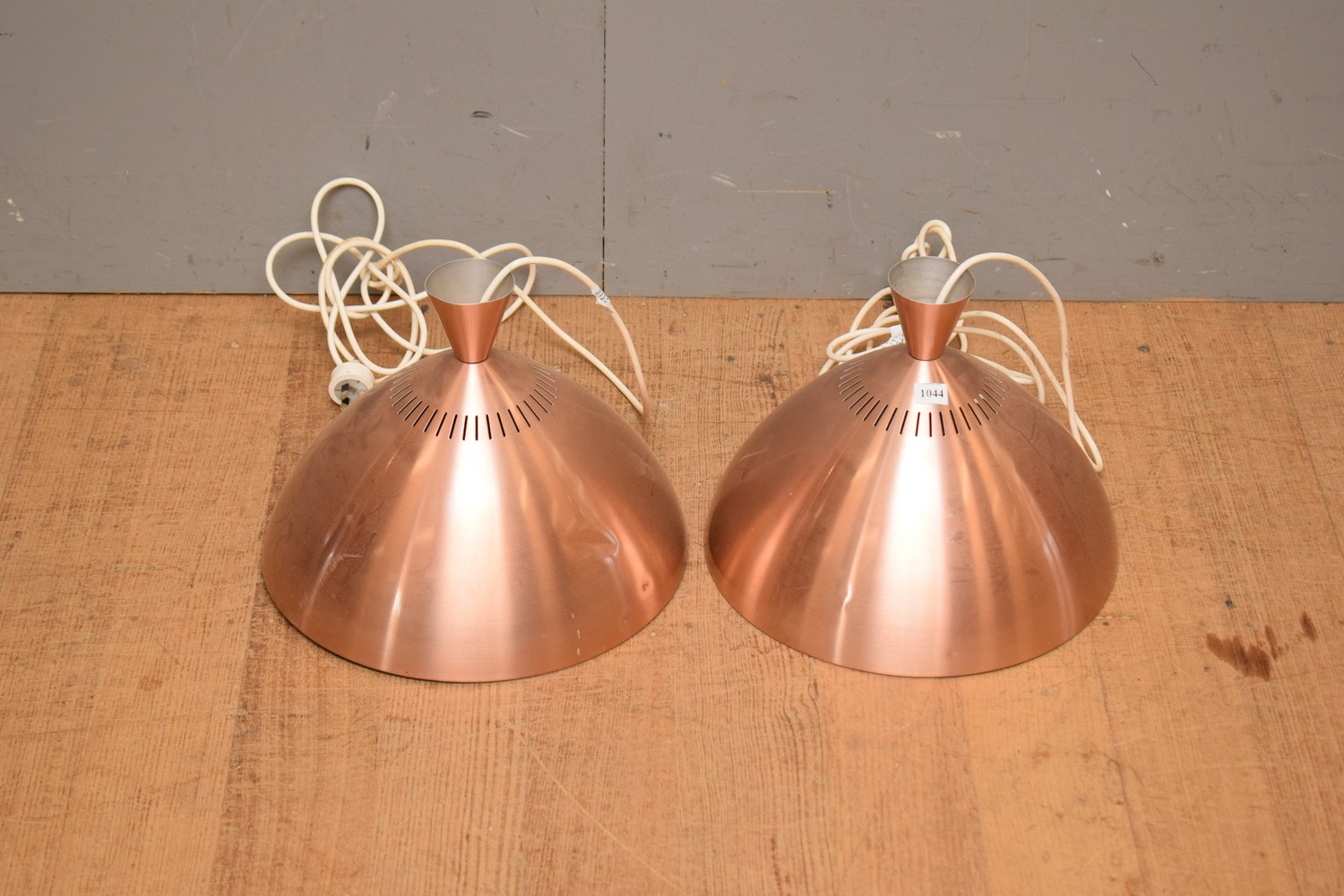 A PAIR OF SPUN METAL PENDANT LIGHTS (A/F) (26H x 34W CM) ( LEONARD JOEL DELIVERY SIZE: SMALL)