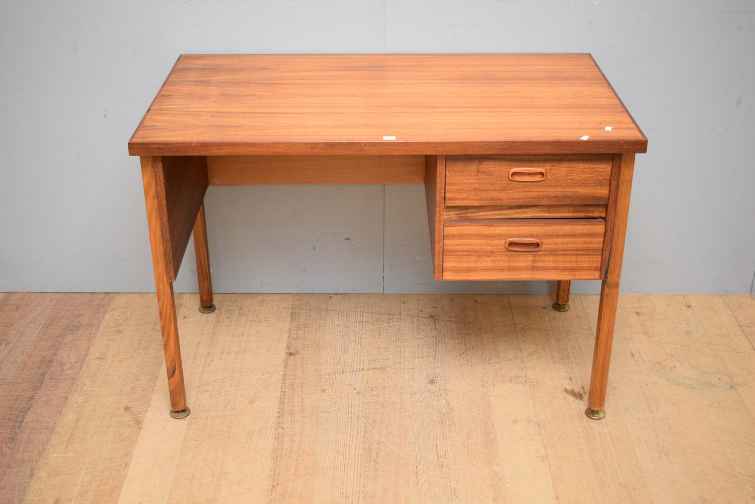 A TWO DRAWER MID-CENTURY DESK (A/F - TO DRAW) (75H x 109W x 63D CM) (LEONARD JOEL DELIVERY SIZE: LARGE)