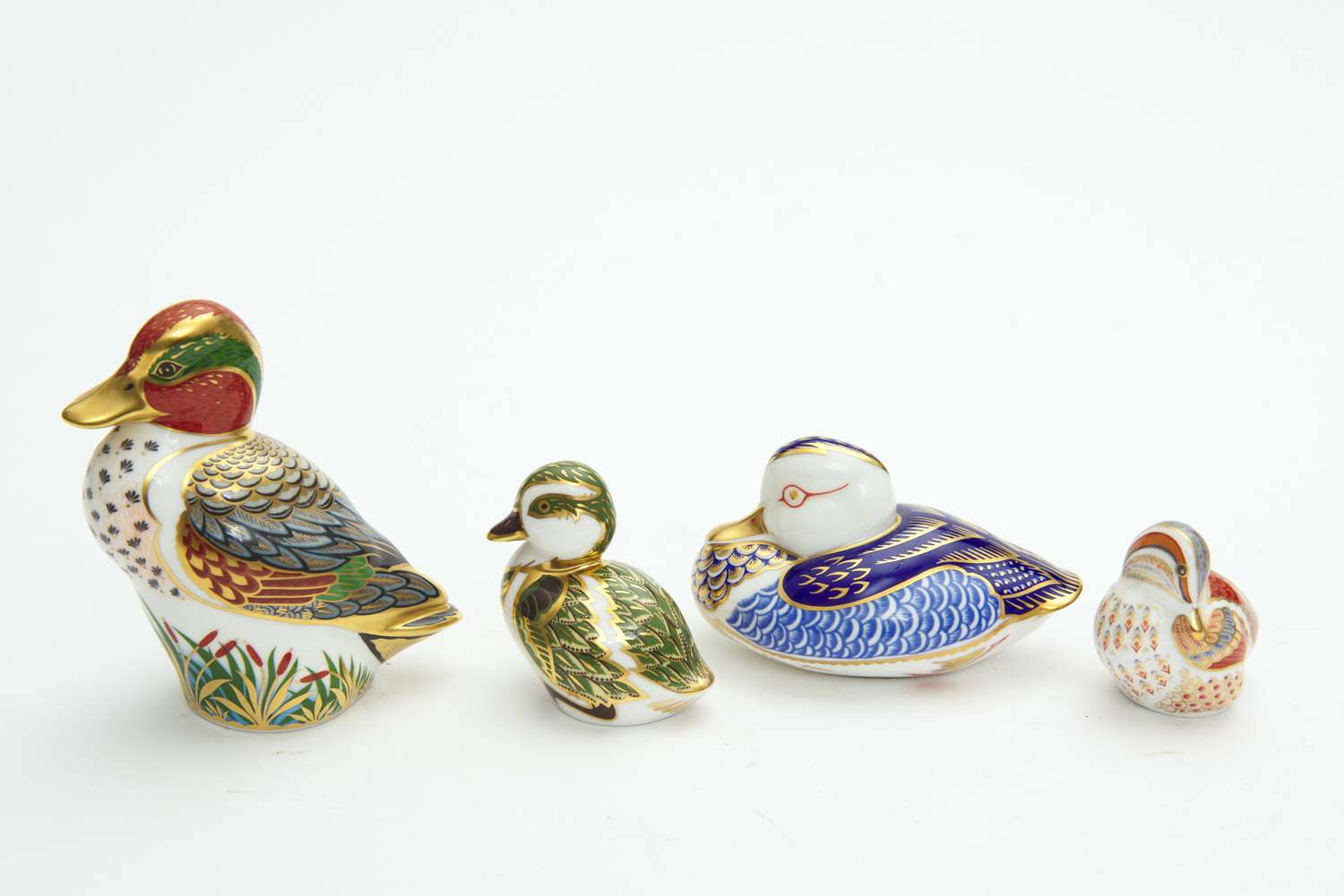 FOUR ROYAL CROWN DERBY PAPERWEIGHTS, INCLUDING 'DUCK', 'DERBYSHIRE DUCKLING', AND 'DUCK & DUCKLING' MEMBERS PACK, LEONARD JOEL LOCAL DELIVERY SIZE: SMALL