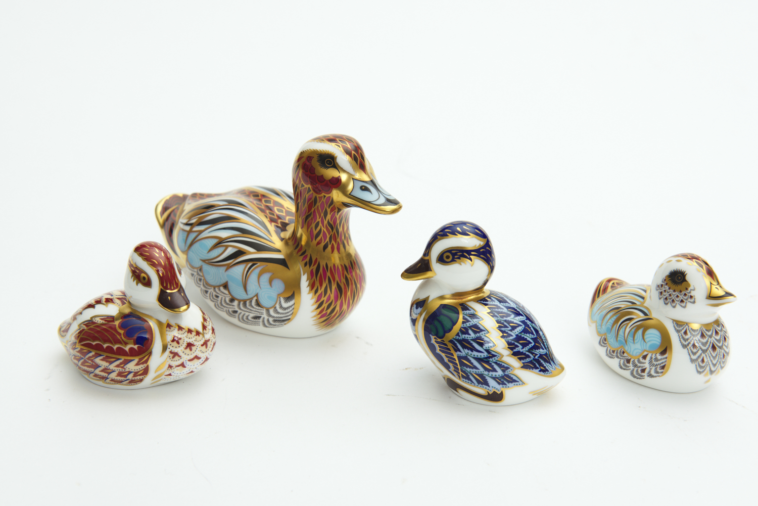 FOUR ROYAL CROWN DERBY PAPERWEIGHTS, INCLUDING 'DUCK & DUCKLING' GUILD MEMBERS PACK, 'SWIMMING DUCKLING' AND 'SITTING DUCKLING', LEONARD JOEL LOCAL DELIVERY SIZE: SMALL