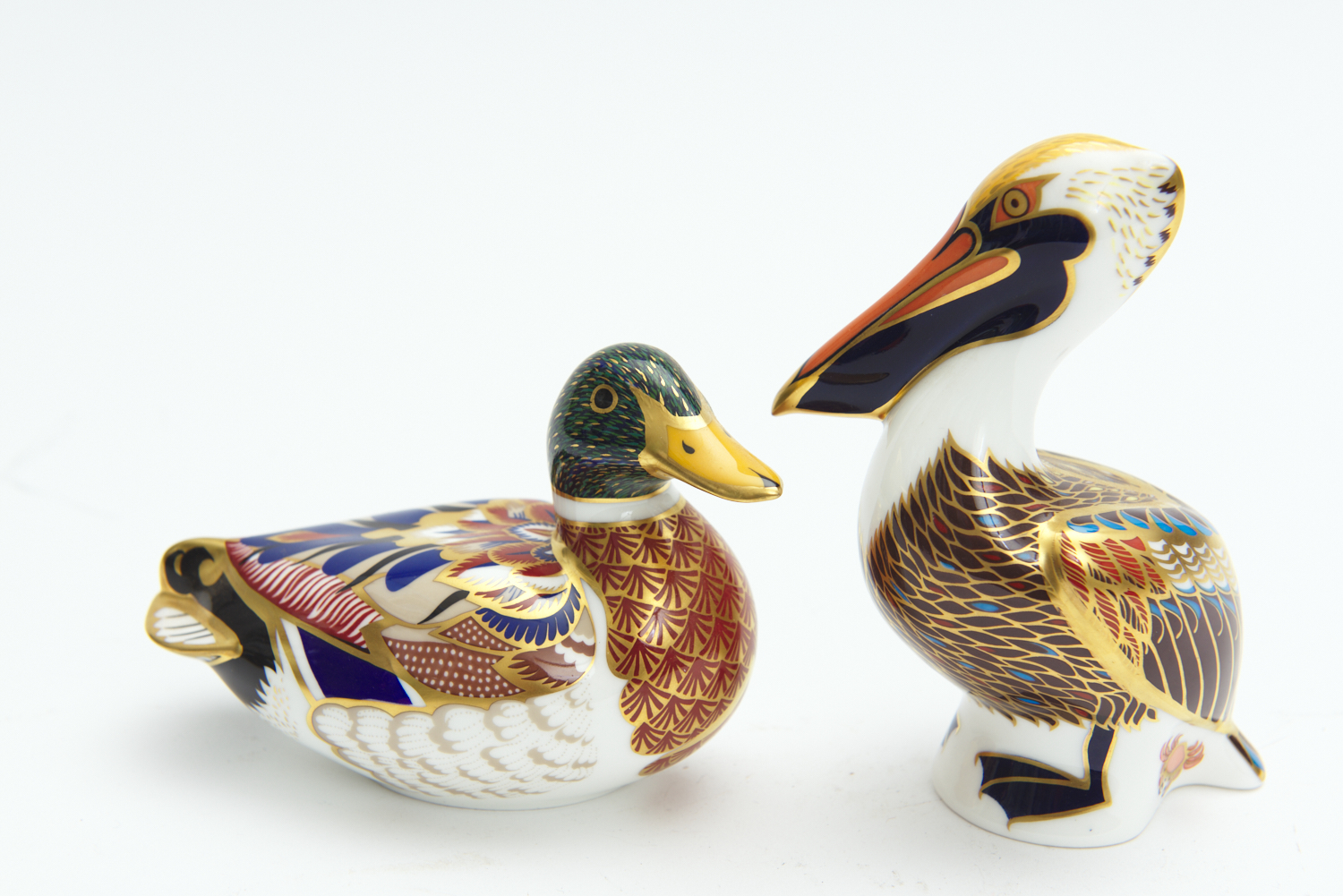 TWO LARGE ROYAL CROWN DERBY PAPERWEIGHTS, INCLUDING 'MALLARD DUCK' AND 'BROWN PELICAN', LEONARD JOEL DELIVERY SIZE: SMALL