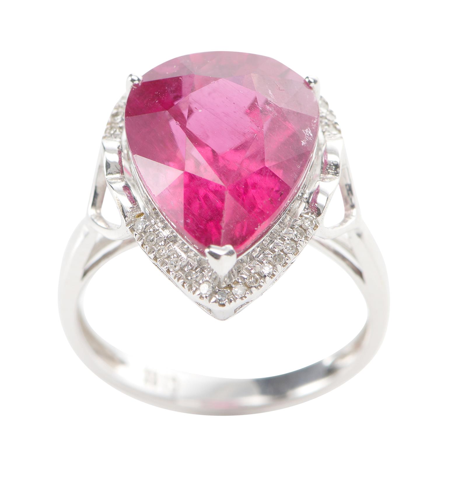 A RUBY AND DIAMOND RING The open shank having each terminal set with a heart shaped ruby cut en cabochon, totalling 5.88cts, within...