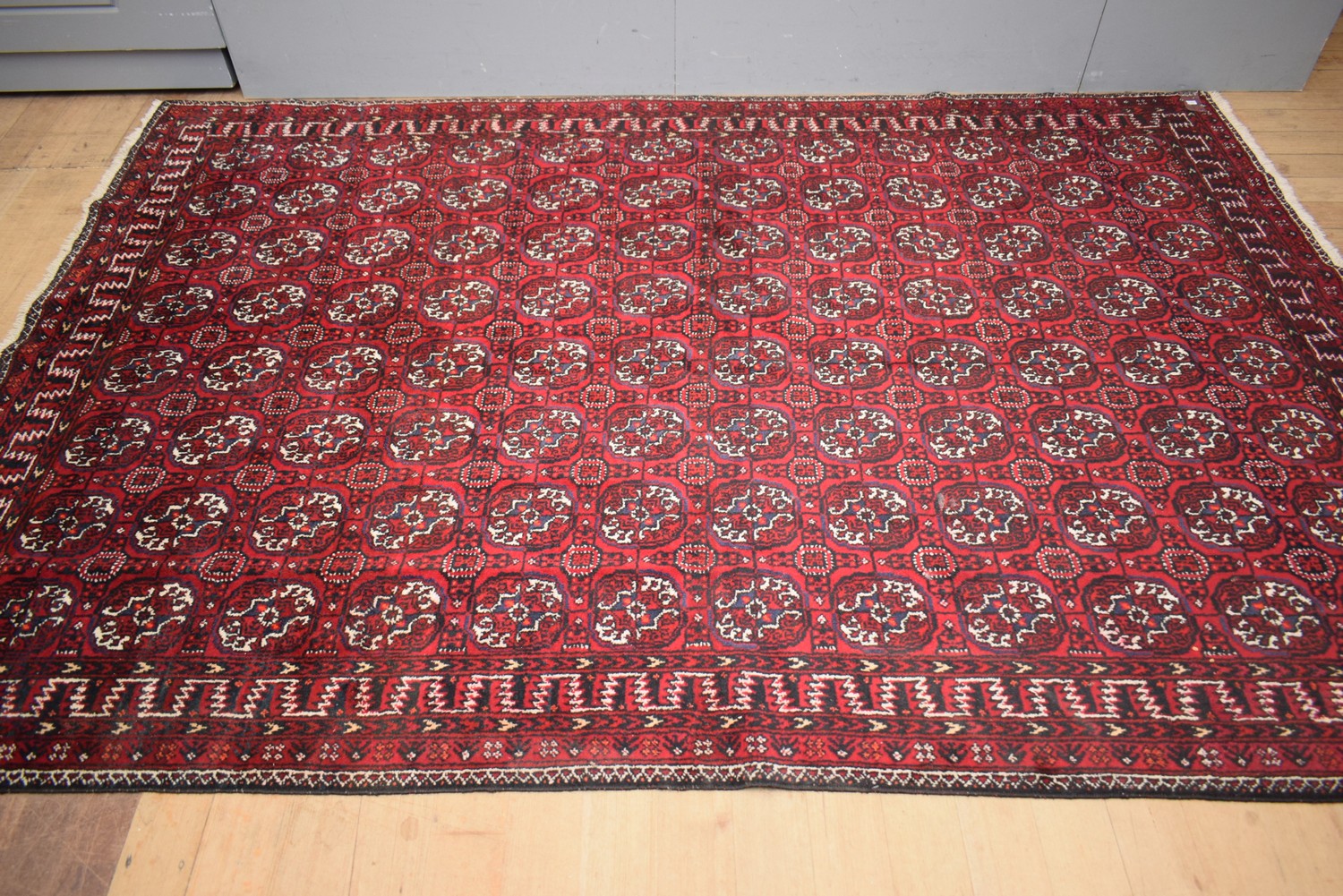 A PERSIAN BALUCHI TRIBAL RUG WITH ALL OVER GEOMETRIC IN PURE WOOL (A/F), 290 X 195 CM (LEONARD JOEL DELIVERY SIZE: MEDIUM)