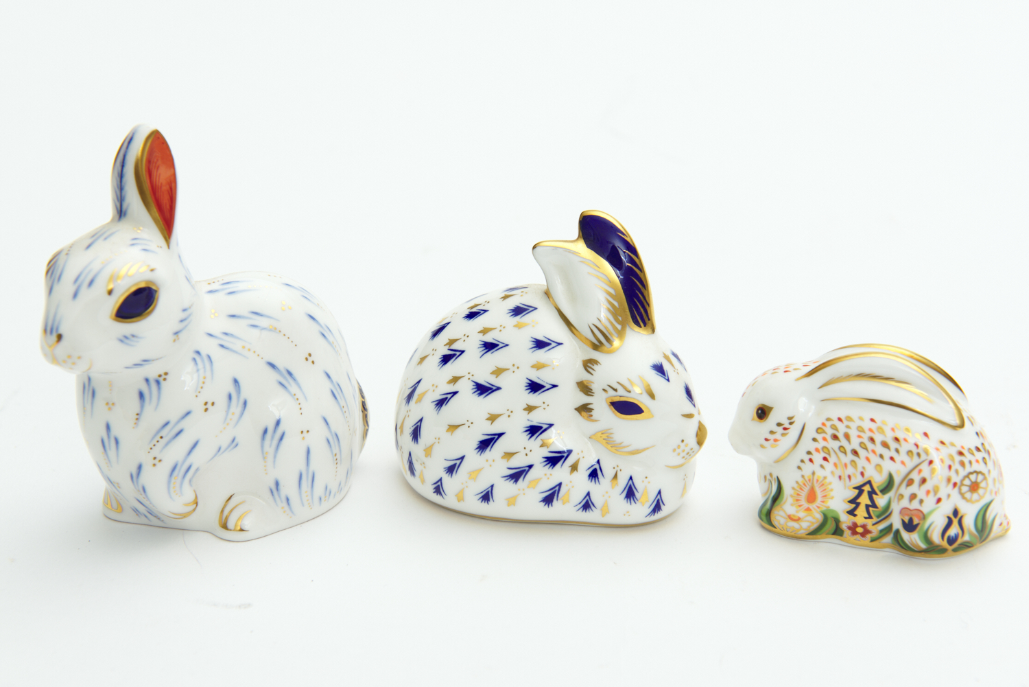 THREE ROYAL CROWN DERBY PAPERWEIGHTS, INCLUDING 'RABBIT', 'BABY ROWS RABBIT', AND 'SNOWY RABBIT', LEONARD JOEL DELIVERY SIZE: SMALL