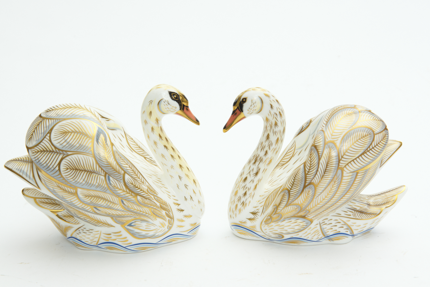 A PAIR OF LIMITED EDITION ROYAL CROWN DERBY PAPERWEIGHTS, 'THE ROYAL SWANS - WILLIAM AND CATHERINE', LEONARD JOEL DELIVERY SIZE: SMALL