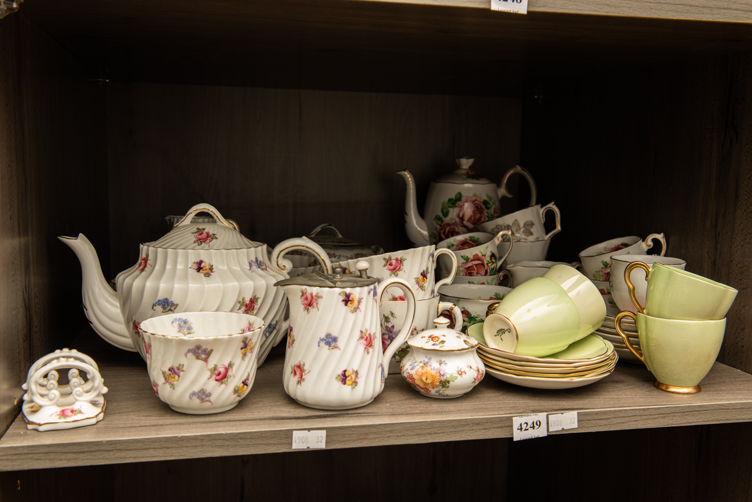 A LARGE COLLECTION OF ASSORTED TEACUPS AND SAUCERS INCLUDING CARLTONWARE, LEONARD JOEL LOCAL DELIVERY SIZE: SMALL