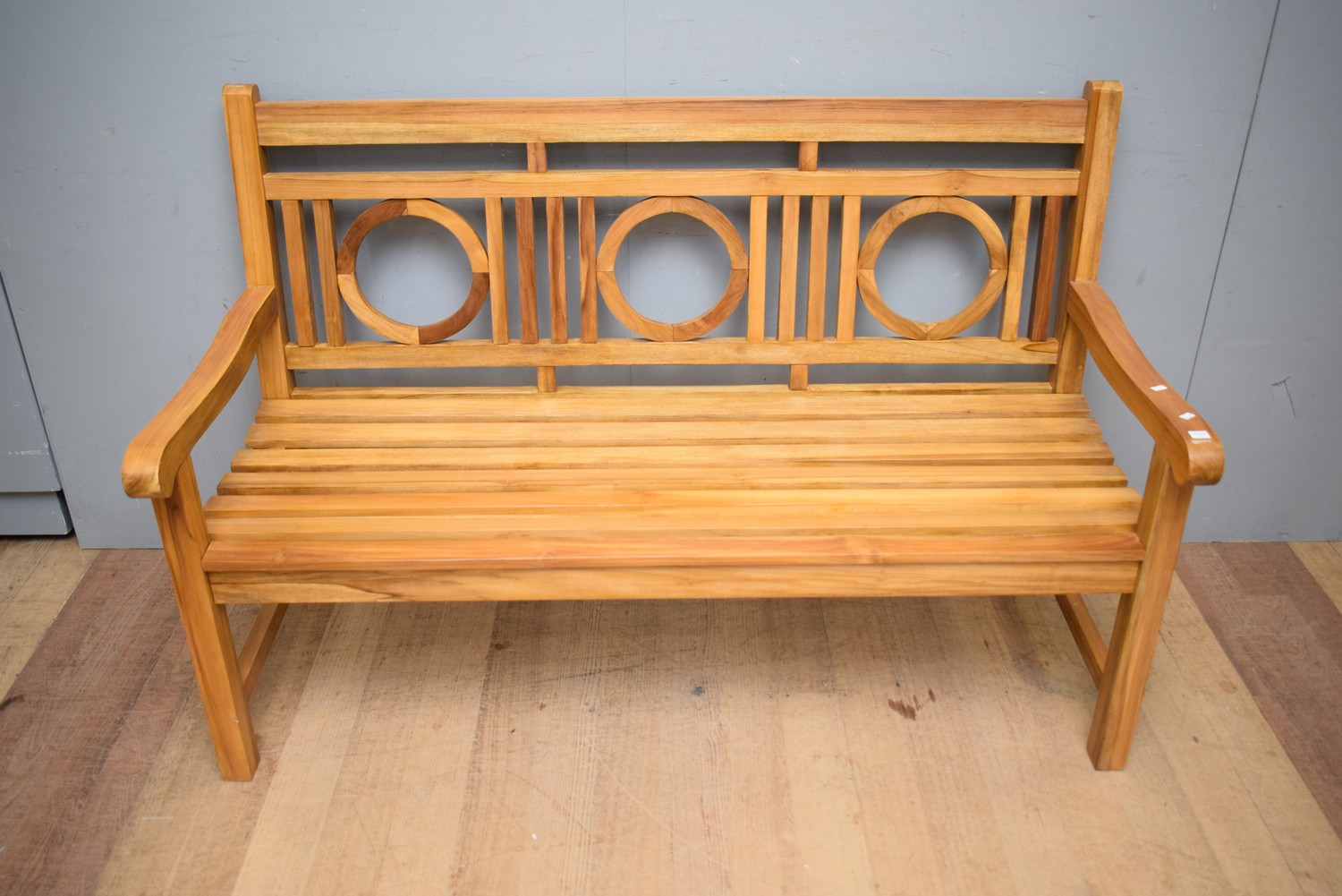 A TEAK BENCH SEAT (100H x 151W x 68D CM) (LEONARD JOEL DELIVERY SIZE: LARGE)