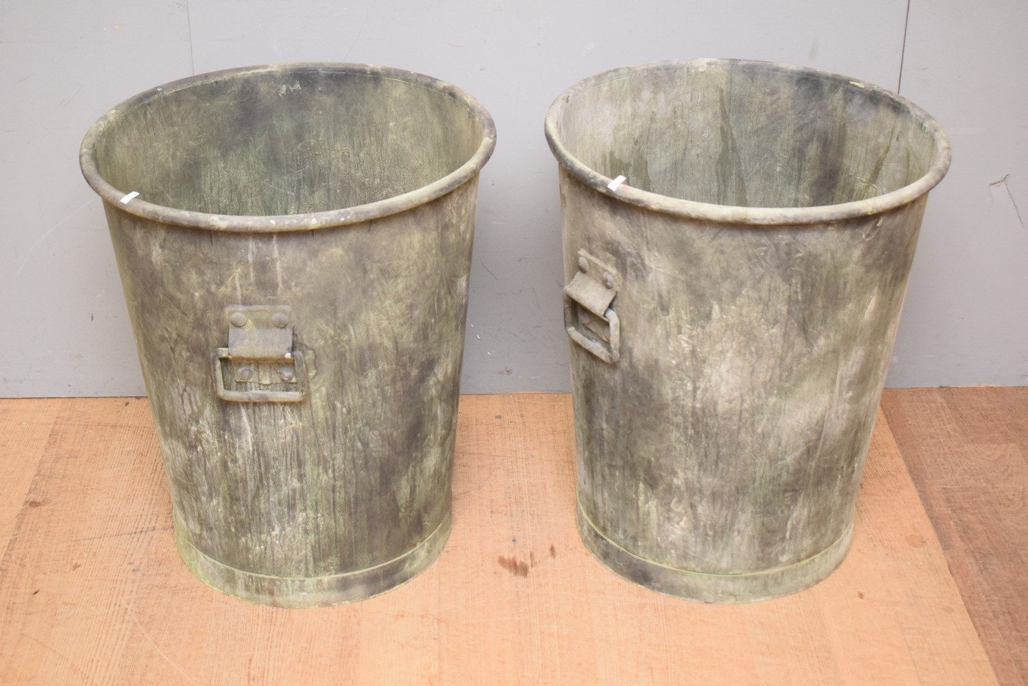 A PAIR OF LARGE METAL PLANTERS (64H x 55D CM) (LEONARD JOEL DELIVERY SIZE: LARGE)