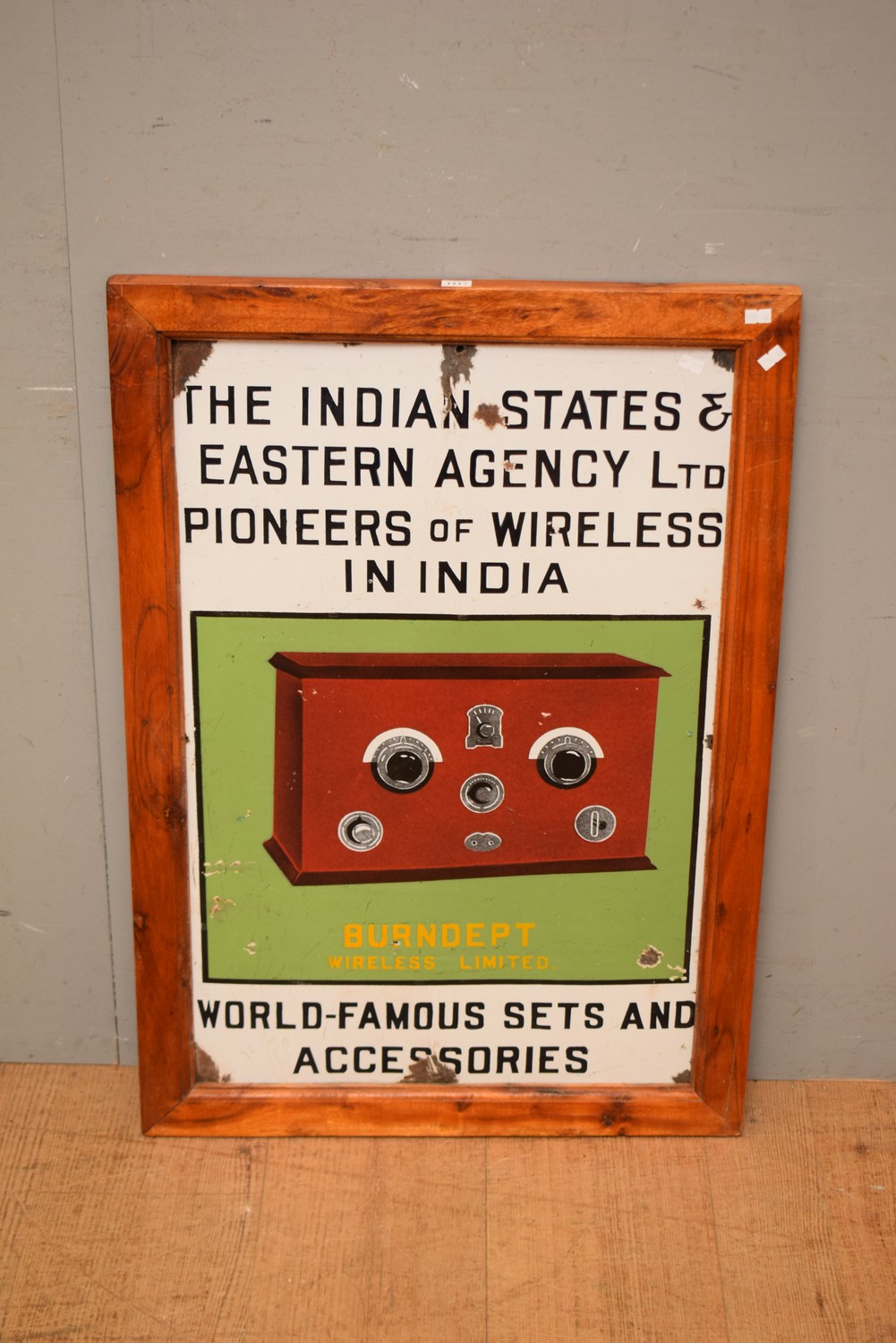 A 1900S WOODEN FRAMED INDIAN STATES WIRELESS RADIO ENAMEL SIGN (85H x 59W CM)(DELIVERY SIZE: MEDIUM)