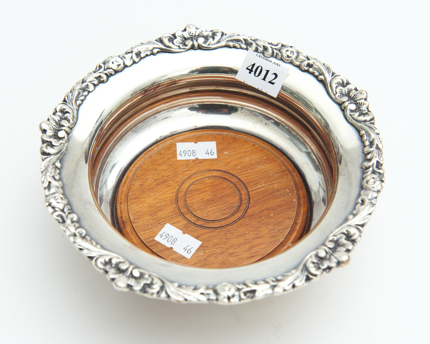 A STRACHAN OLD SHEFFIELD REPRODUCTION SILVER PLATE BOTTLE COASTER, LEONARD JOEL DELIVERY SIZE: SMALL