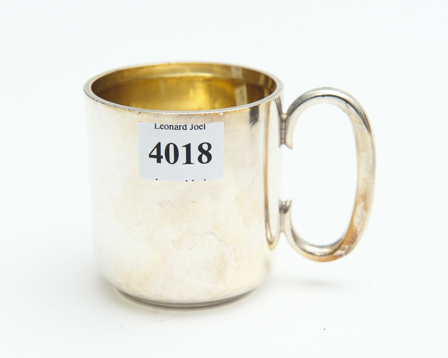 There are no monograms in evidence; there are a number of slight dents in places, most of which only been seen from the interior, with the exception of one larger dent to the lower body and one other to the centre of one side. There is overall heavy wear and areas of pitting to the entire piece, including multiple 'nicks' to the rim; there is evidence of a gilt wash to the interior which is now mostly worn away.