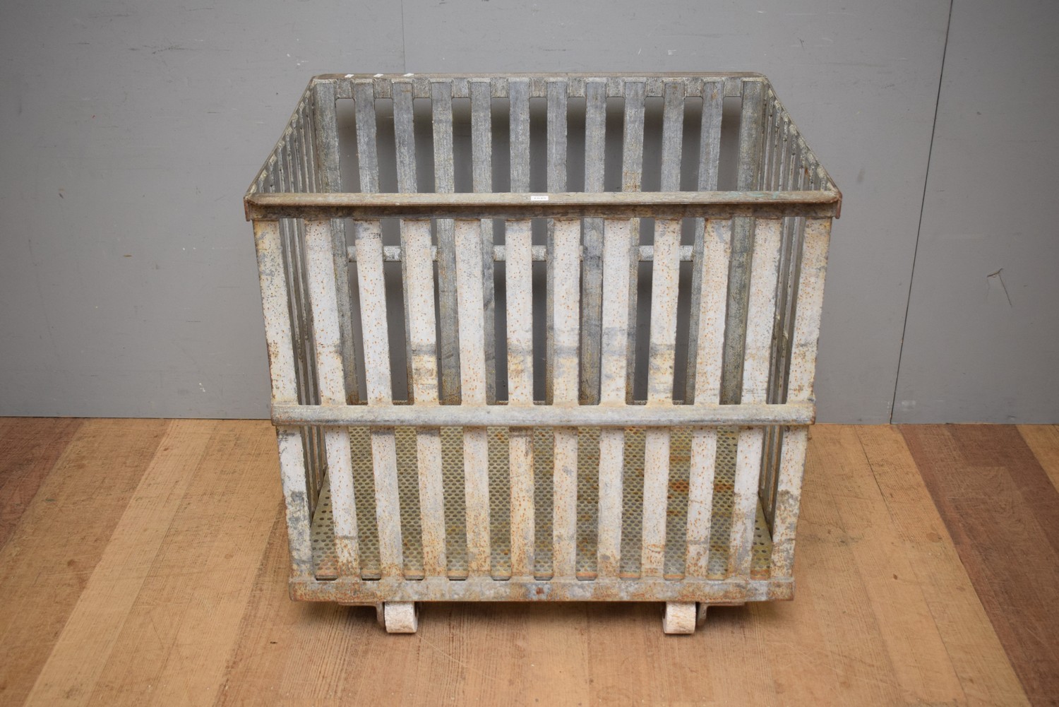 A SUBSTANTIAL INDUSTRIAL TROLLEY WITH PERFORATED METAL BASE (87H x 89W x 73D CM) (PLEASE NOTE THIS HEAVY ITEM MUST BE REMOVED BY CARRIERS AT THE CUSTOMER'S EXPENSE. LEONARD JOEL STAFF CANNOT ASSIST CARRYING THIS ITEM) (DELIVERY SIZE: XX-LARGE)