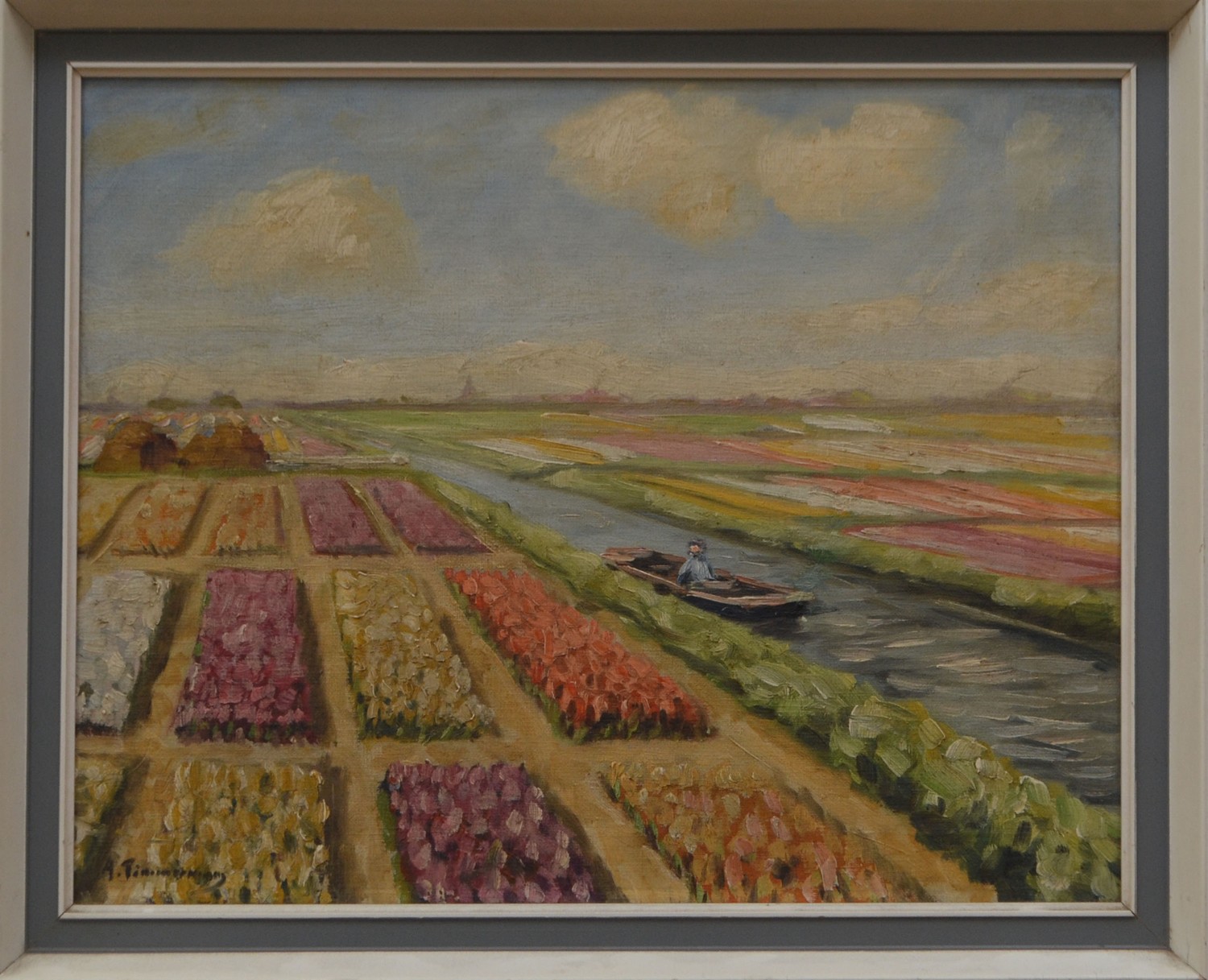 ARTIST UNKNOWN, UNTITLED (FLOWER FIELD), OIL ON BOARD, 34 X 44CM, FRAME: 41 X 50CM, CONDITION: DISCOLOURATION THROUGHOUT, HAIRLINE CRACKS TO THE UPPER RIGHT HAND SIDE. LEONARD JOEL DELIVERY SIZE: MEDIUM