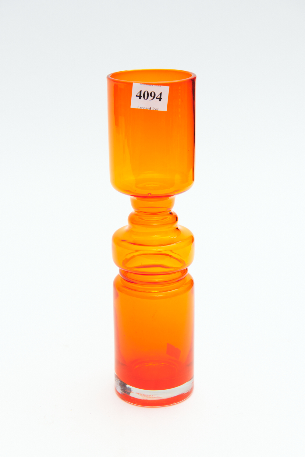 A SWEDISH MID CENTURY LINDSHAMMER ORANGE GLASS VASE BY GUNNAR ANDERS H.26CM, LEONARD JOEL DELIVERY SIZE: SMALL