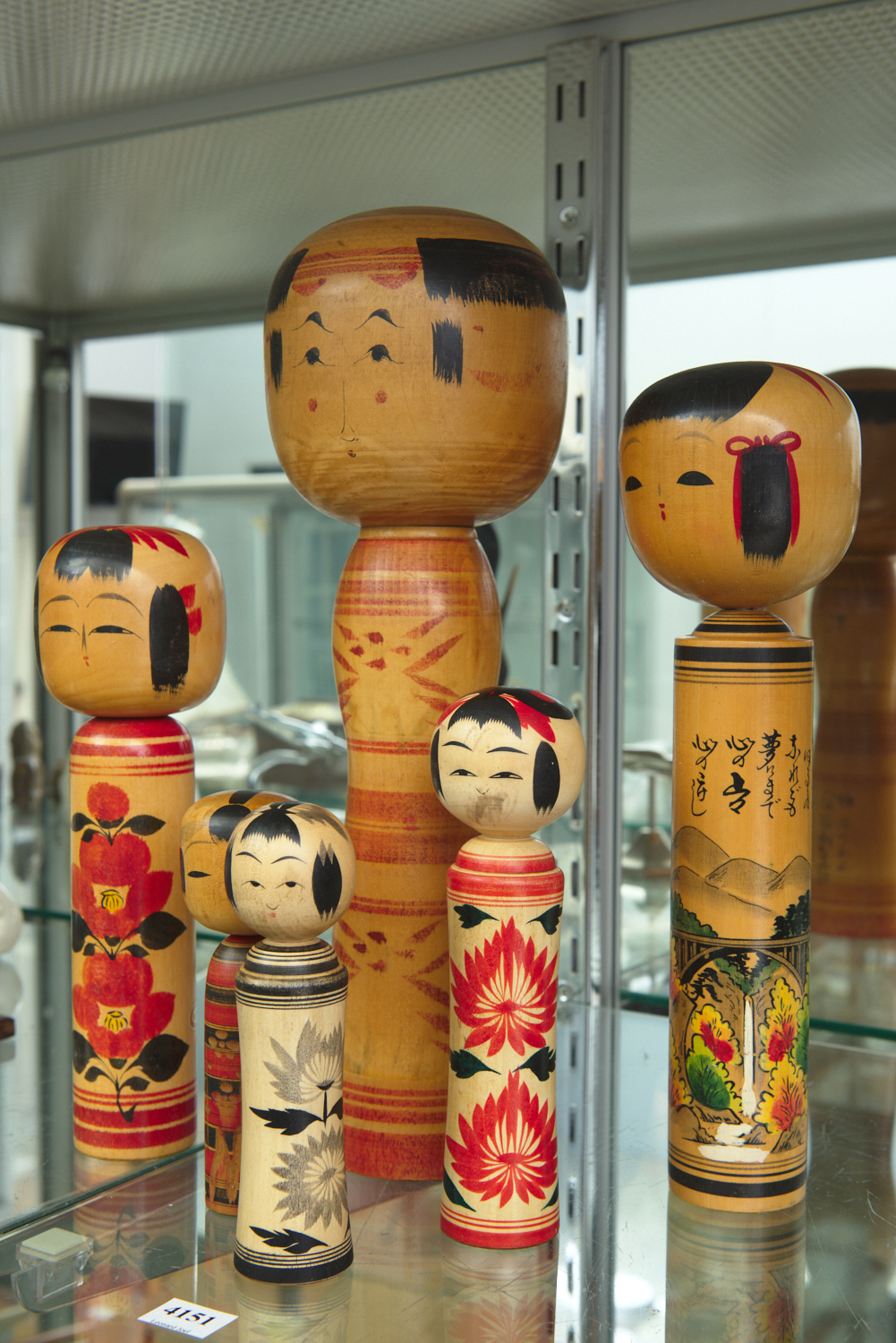 COLLECTION OF SIX VINTAGE JAPANESE HAND PAINTED KOKESHI DOLLS, THE LARGEST 36 CM HIGH, LEONARD JOEL DELIVERY SIZE: SMALL
