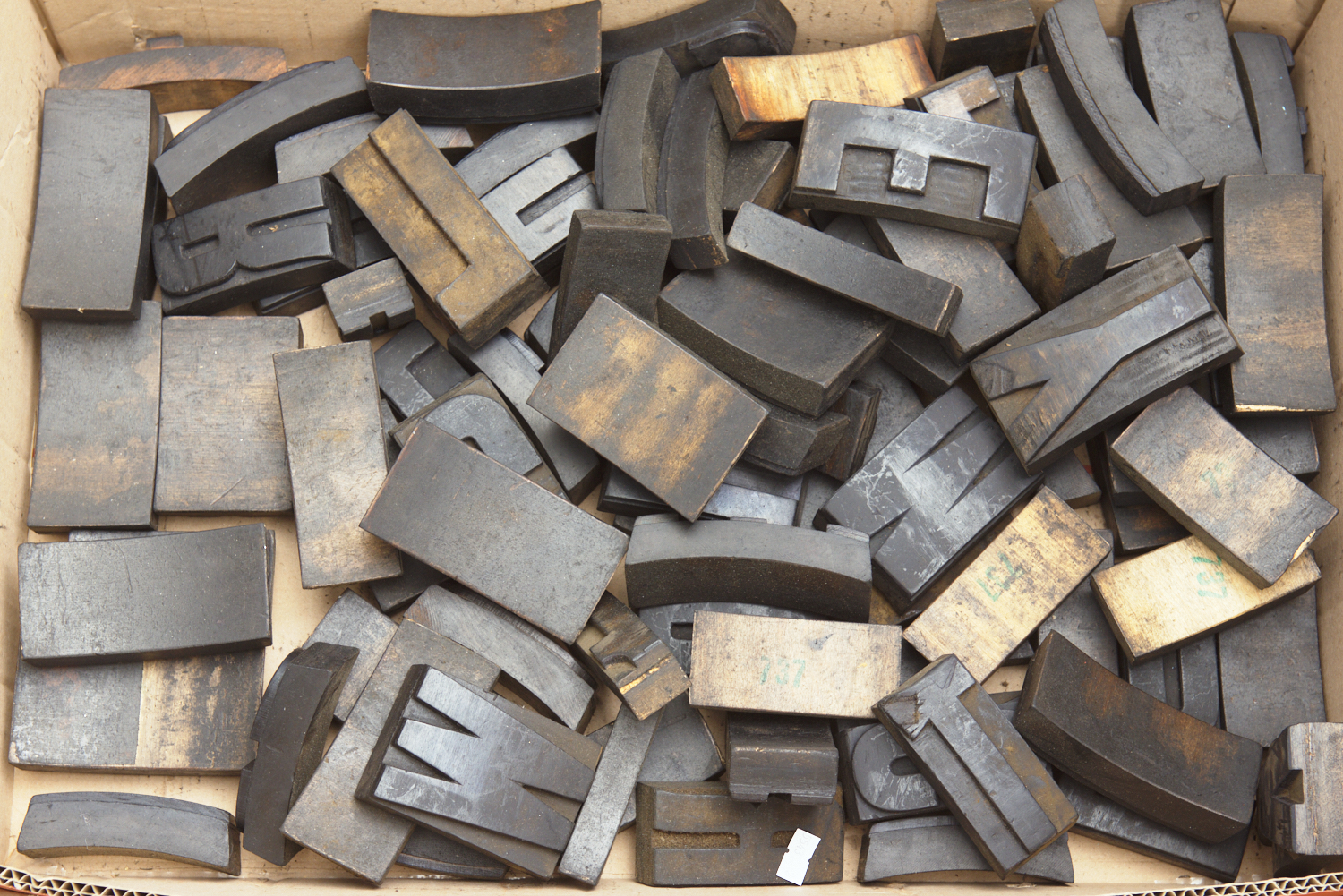 A BOX OF WOODEN LETTER PRESS BLOCKS, LEONARD JOEL DELIVERY SIZE: SMALL