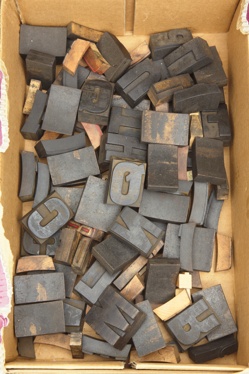 A BOX OF WOODEN LETTER PRESS BLOCKS, LEONARD JOEL DELIVERY SIZE: SMALL