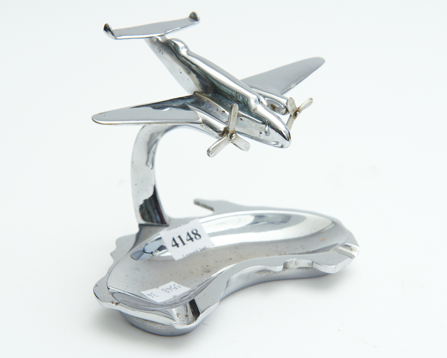 A 1940S WWII CHROME PLATED AVRO ANSON AEROPLANE ON BASE IN THE FORM OF A MAP OF AUSTRALIA, 12 CM HIGH, LEONARD JOEL DELIVERY SIZE: SMALL