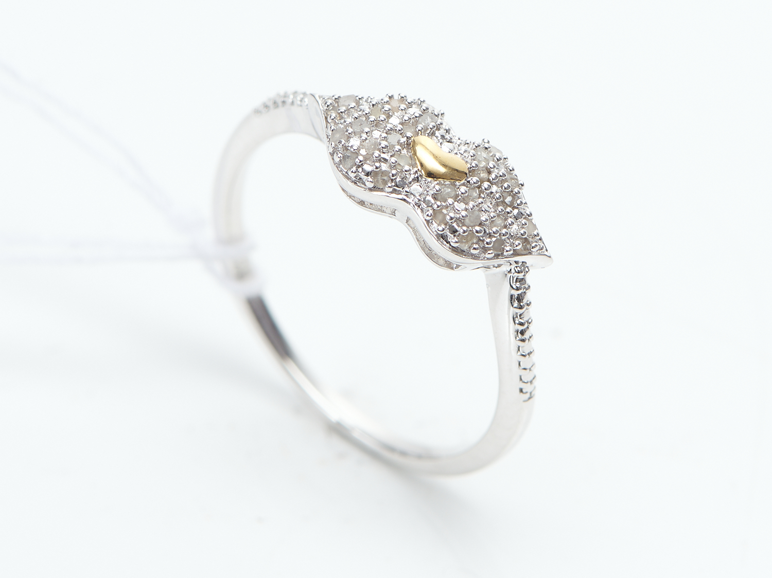 A MOISSANITE DRESS RING IN GOLD AND SILVER, FEATURING LIPS, SIZE N
