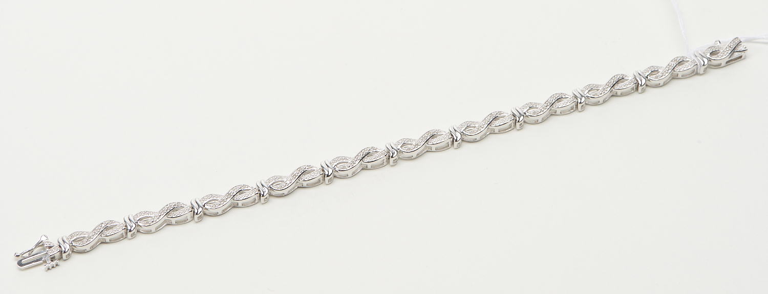 A DIAMOND SET BRACELET IN STERLING SILVER, TOTAL LENGTH 180MM