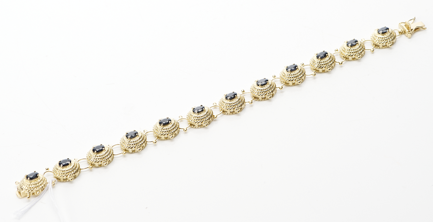 A SAPPHIRE BRACELET IN SILVER GILT, TOTAL LENGTH 220MM