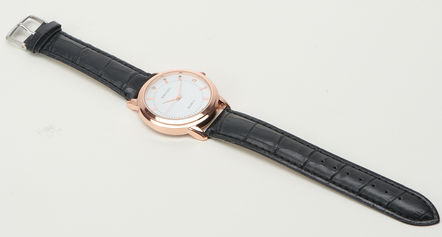 A MREURIO QUARTZ WRISTWATCH, DIAMETER 40MM, TO BLACK LEATHER BANDS, BOXED