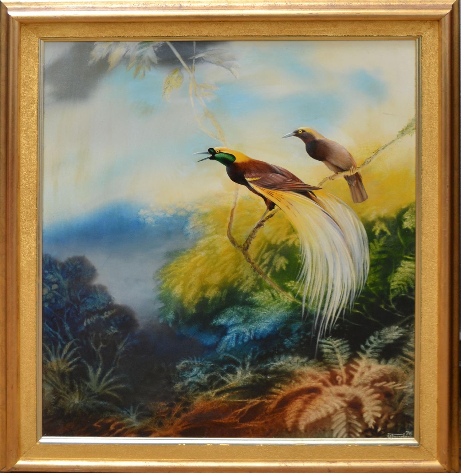 BLAKE TWIGDEN, BIRDS OF PARADISE, OIL ON BOARD, 59 X 49CM, FRAME SIZE: 72 X 62CM, CONDITION: SOME SURFACE ABRASIONS, UPPER RIGHT HAND SIDE MEASURING 4CM. LEONARD JOEL DELIVERY SIZE: MEDIUM