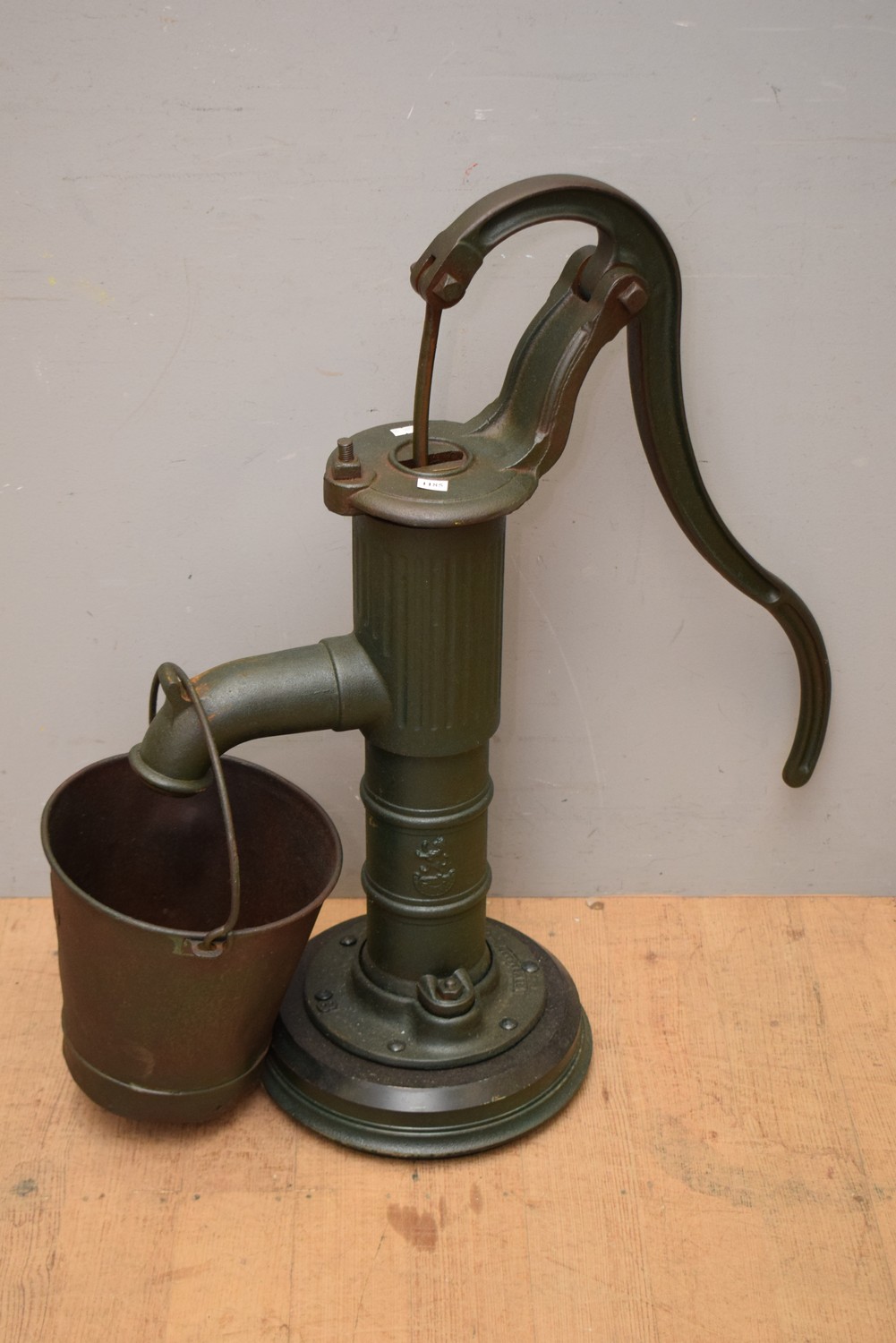 A VICTORIAN STYLE WATER PUMP AND BUCKET (91H CM) (PLEASE NOTE THIS HEAVY ITEM MUST BE REMOVED BY CARRIERS AT THE CUSTOMER'S EXPENSE. LEONARD JOEL STAFF CANNOT ASSIST CARRYING THIS ITEM) (X-LARGE ITEM)