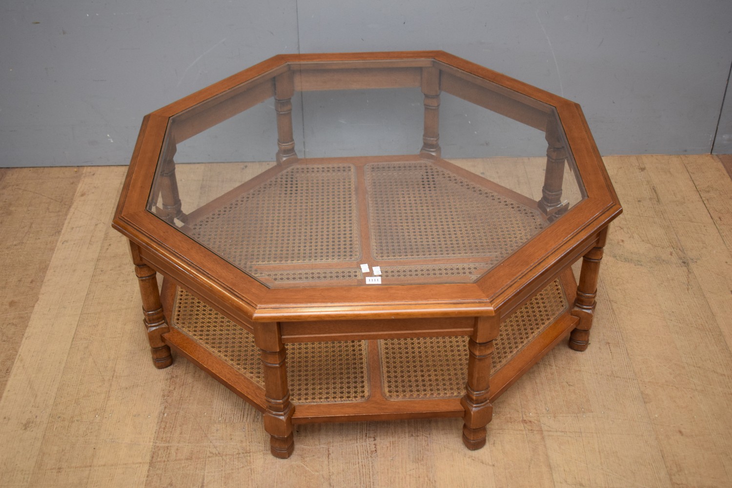A GLASS TOPPED OCTAGONAL TWO TIER COFFEE TABLE (39H x 97D CM) (LEONARD JOEL DELIVERY SIZE: LARGE)