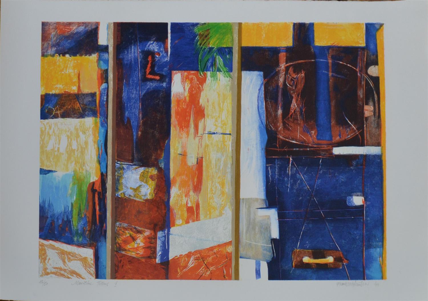 FRANK HODGINKSON, MARITIME TOTEMS, COLLOGRAPH 42/50, 65 X 84.5, UNFRAMED, CONDITION: VERY GOOD. LEONARD JOEL DELIVERY SIZE: SMALL