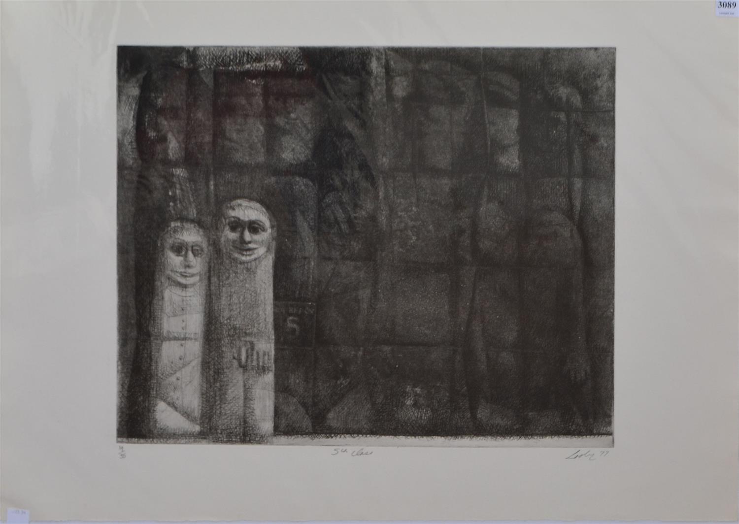 KEITH LOOBY, 5TH CLASS 1977, ETCHING 19/35, SHEET SIZE: 53 X 75CM, UNFRAMED BUT BACKED AND WRAPPED FOR PROTECTION, CONDITION: VERY GOOD. LEONARD JOEL DELIVERY SIZE: SMALL