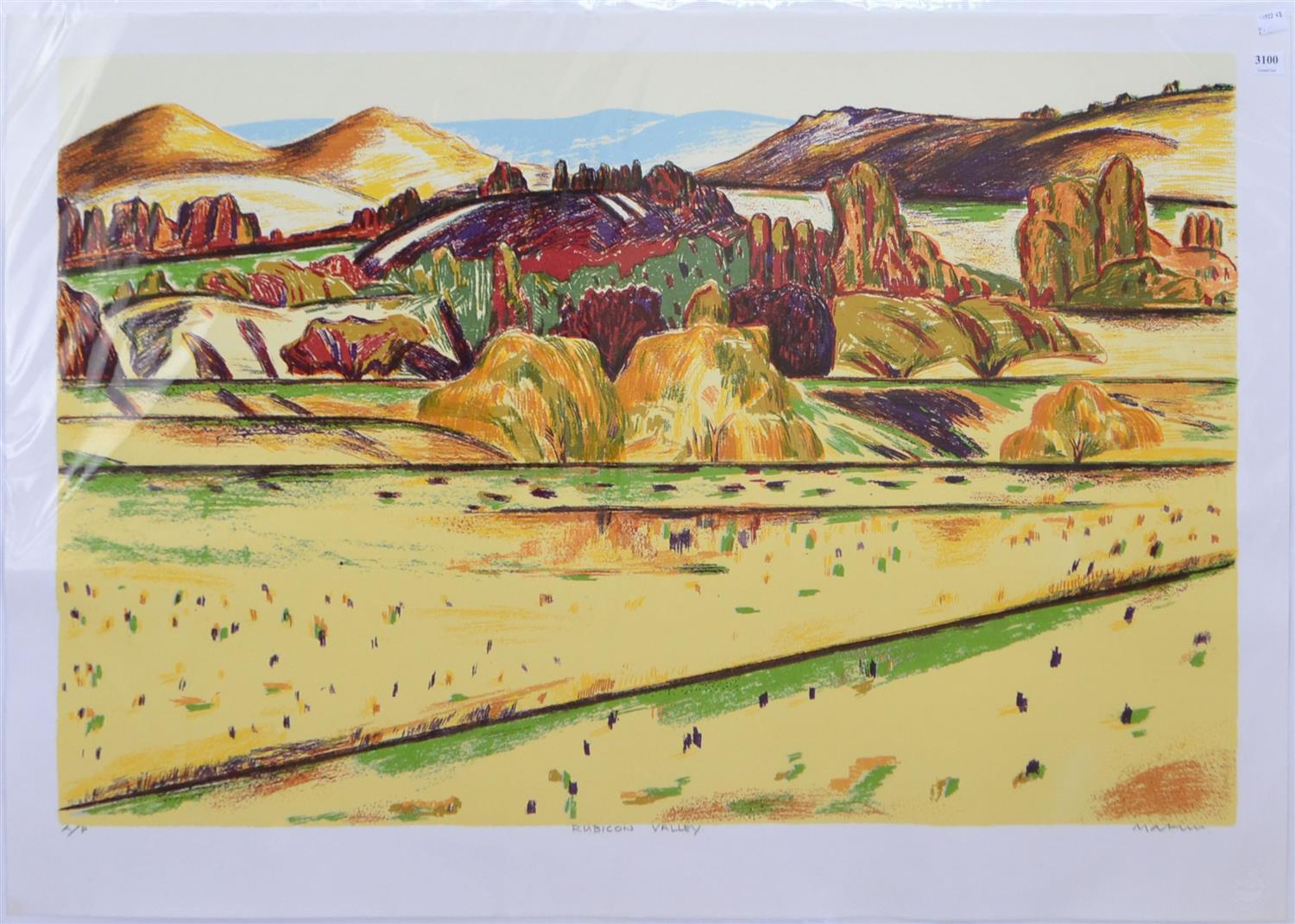 JEFF MAKIN, RUBICON VALLEY, SCREENPRINT A/P, SHEET SIZE: 70 X 100CM, UNFRAMED BUT BACKED AND WRAPPED FOR PROTECTION, CONDITION: VERY GOOD, LEONARD JOEL DELIVERY SIZE: SMALL
