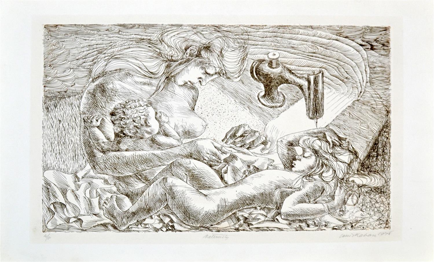 LOUIS KAHAN, MATERNITY 1976, ETCHING A/P, 39 X 50CM, SHEET SIZE: 49 X 63CM, UNFRAMED, CONDITION: SLIGHT DISCOLOURATION THROUGHOUT OTHERWISE GOOD CONDITION. LEONARD JOEL DELIVERY SIZE: SMALL