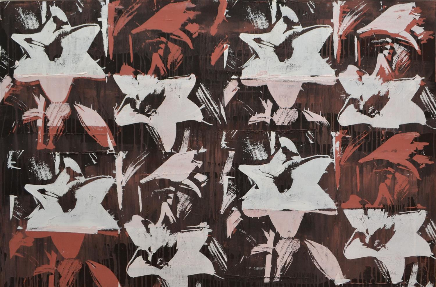 NICK MORRIS, UNTITLED, ACRYLIC ON CANVAS, 100 X 156CM, CONDITION: VERY GOOD, WEAR TO EDGES, LEONARD JOEL DELIVERY SIZE: LARGE