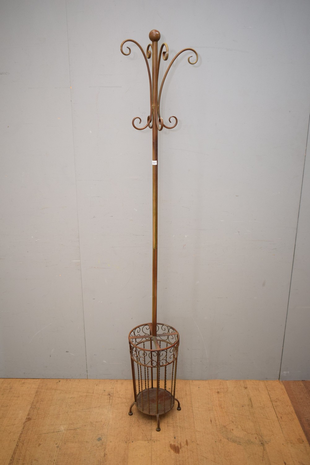 A 1950S METAL COAT STAND WITH UMBRELLA AND WALKING STICK CAGE TO BASE (181H CM) (LEONARD JOEL DELIVERY SIZE: MEDIUM)
