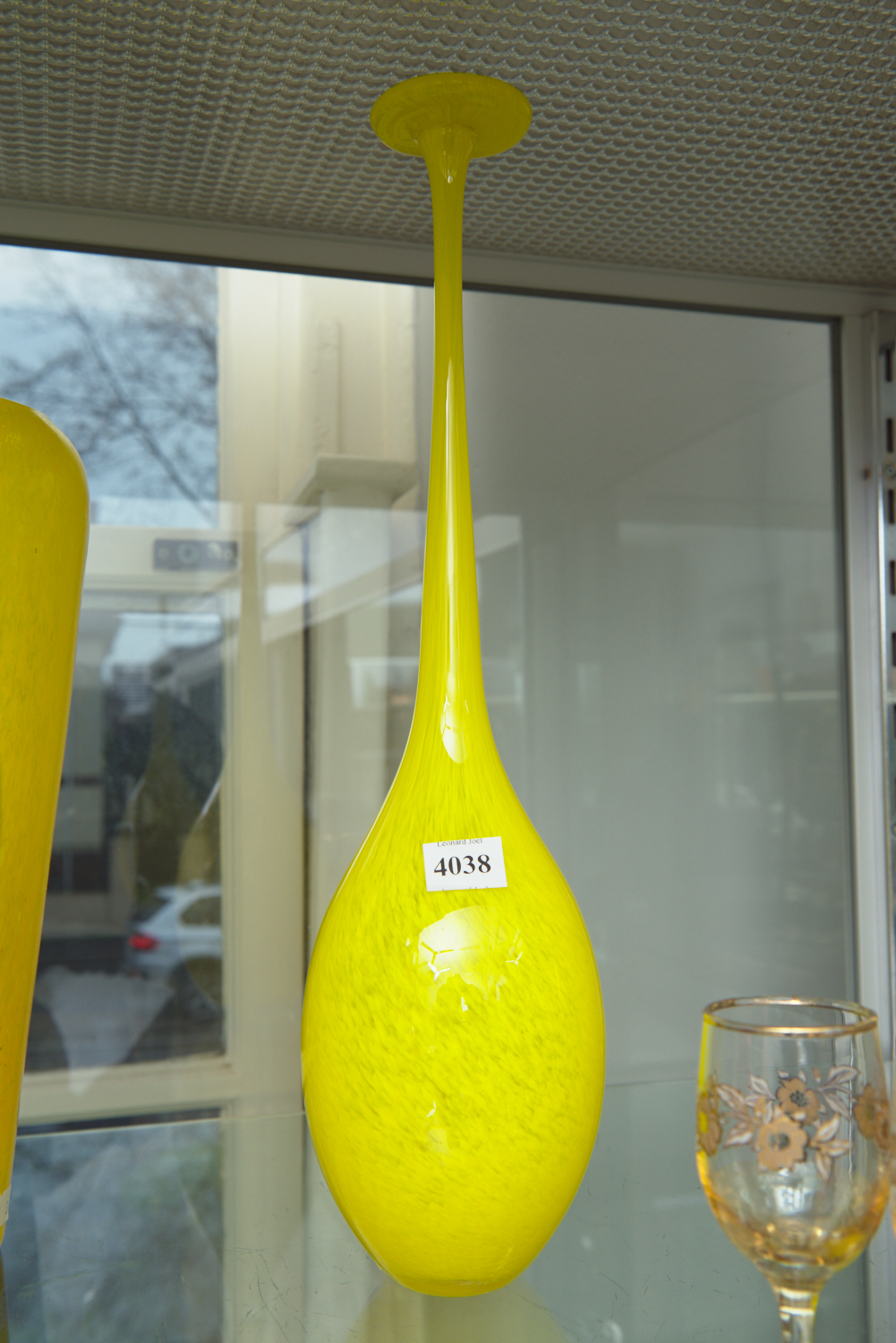 A YELLOW ART GLASS TALL SPECIMEN VASE H.40CM, LEONARD JOEL LOCAL DELIVERY SIZE: SMALL