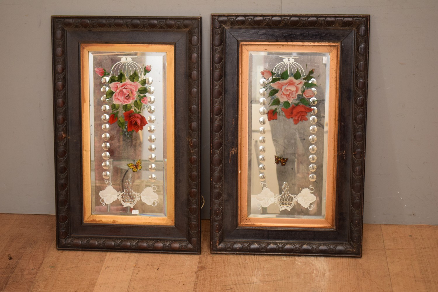 TWO EDWARDIAN OAK FRAMED MIRRORS WITH FLORAL PAINTED HIGHLIGHTS (83H x 52W CM) (LEONARD JOEL DELIVERY SIZE: MEDIUM)