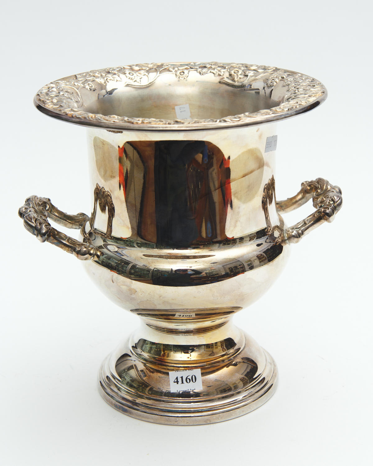 A VINTAGE SILVER PLATED RODD CHAMPAGNE BUCKET, 25 CM HIGH, LEONARD JOEL LOCAL DELIVERY SIZE: SMALL