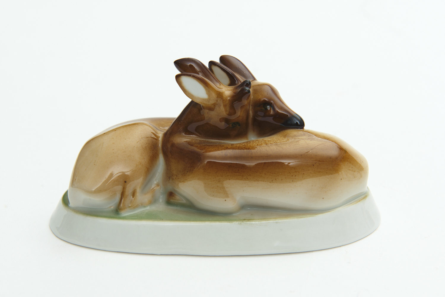 A HUNGARIAN SZOLNAY DEER FIGURE GROUP, L.16CM, LEONARD JOEL DELIVERY SIZE: SMALL