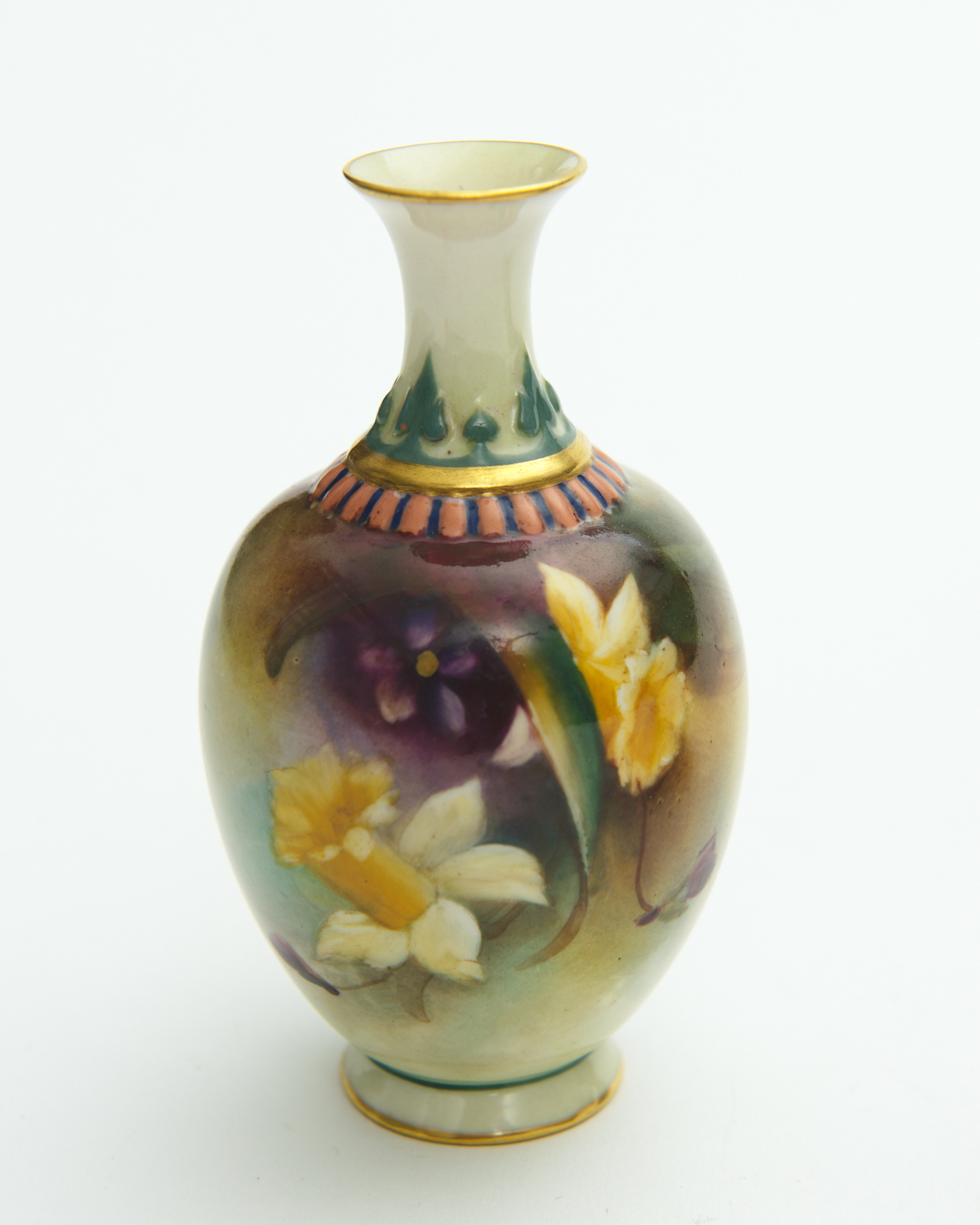 A 1920S HADLEYS ROYAL WORCESTER FLORAL HAND PAINTED VASE, H.12CM, LEONARD JOEL DELIVERY SIZE: SMALL