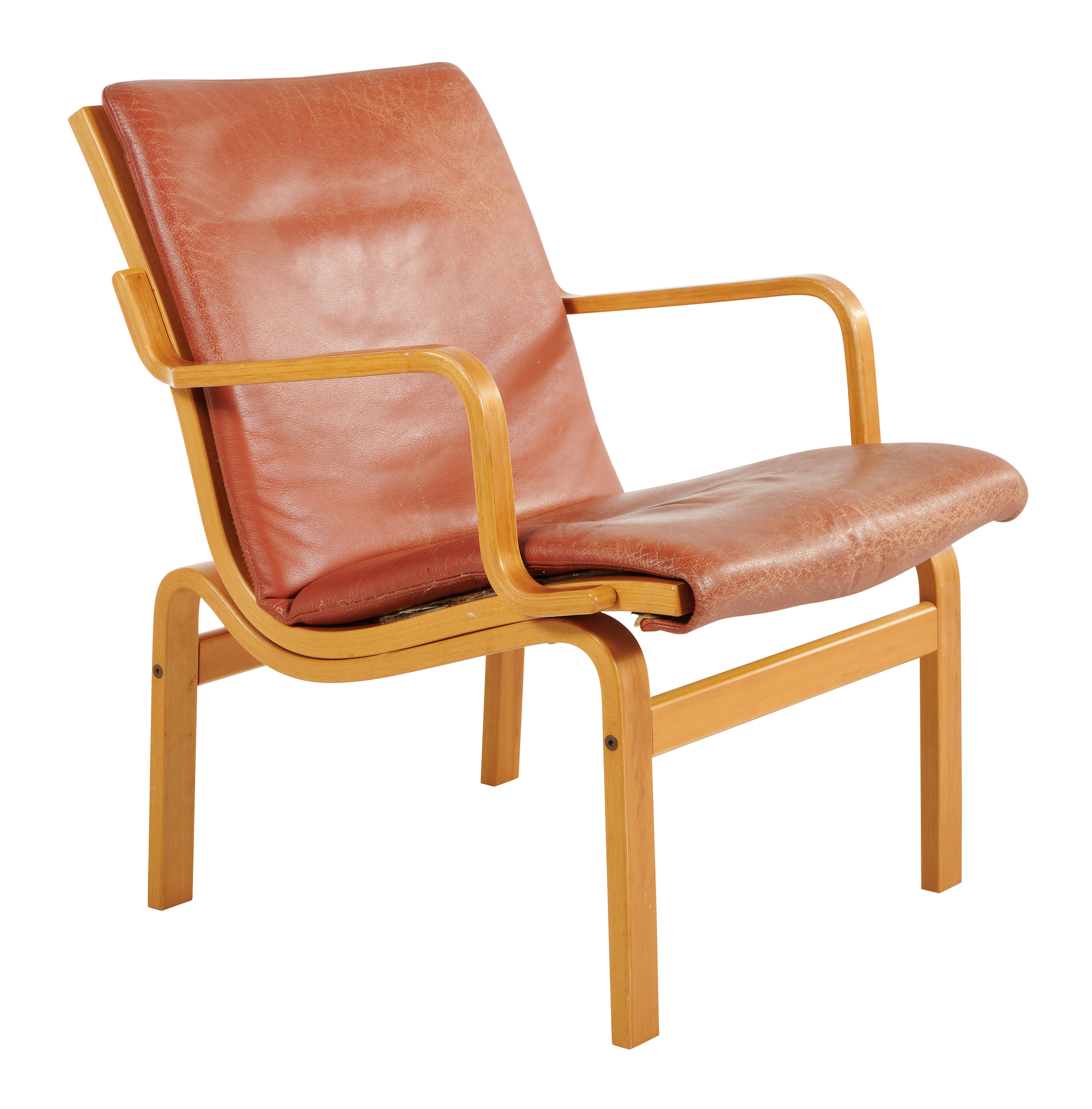 Heavy wear to leather seat cushion, however no rips or tears. Some minor scratches to frame consistent with age. Overall structurally sound and in good condition.