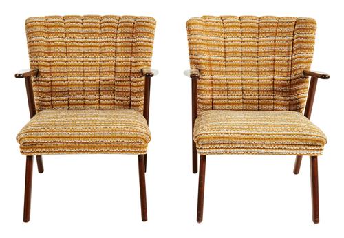 Upholstery and cushions in very good condition, minor pilling consistent with age. Structurally sound with minor surface scratches to frames consistent with age.