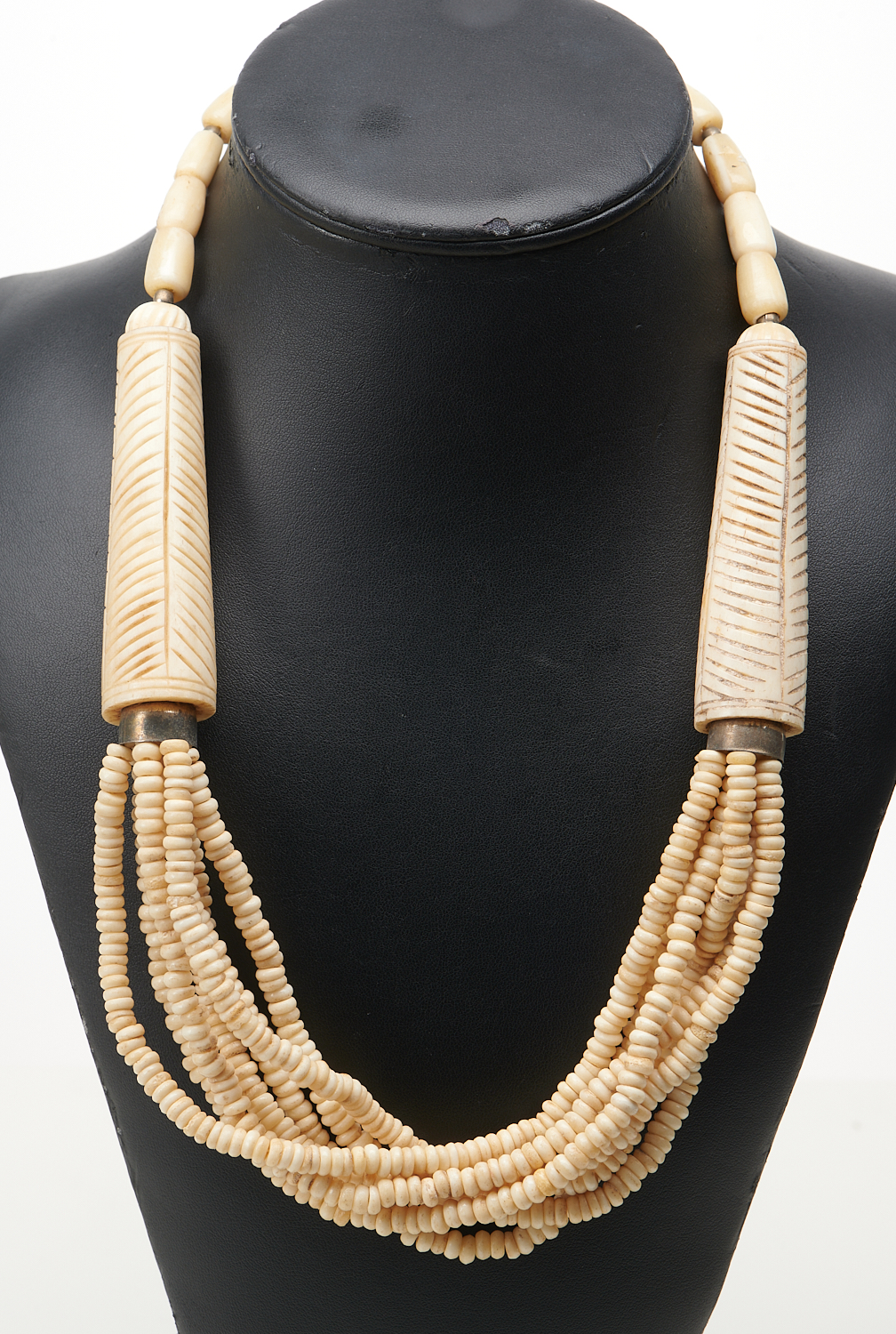 A VINTAGE TRIBAL BONE NECKLACE, LENGTH 62CM