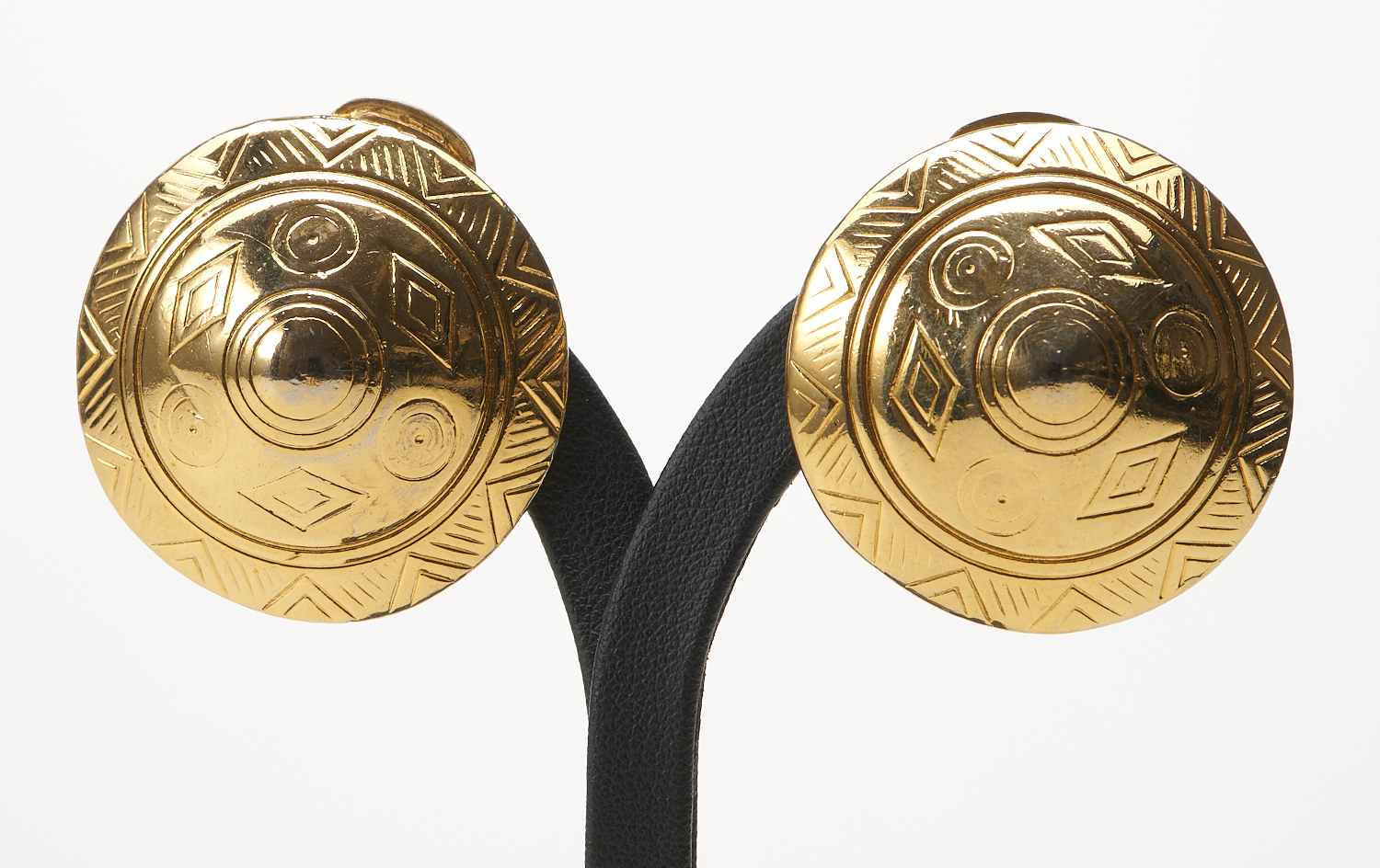 A PAIR OF LARGE CIRCULAR CLIP EARRINGS IN GOLDEN METAL, DIAMETER 35MM, CIRCA 1990s