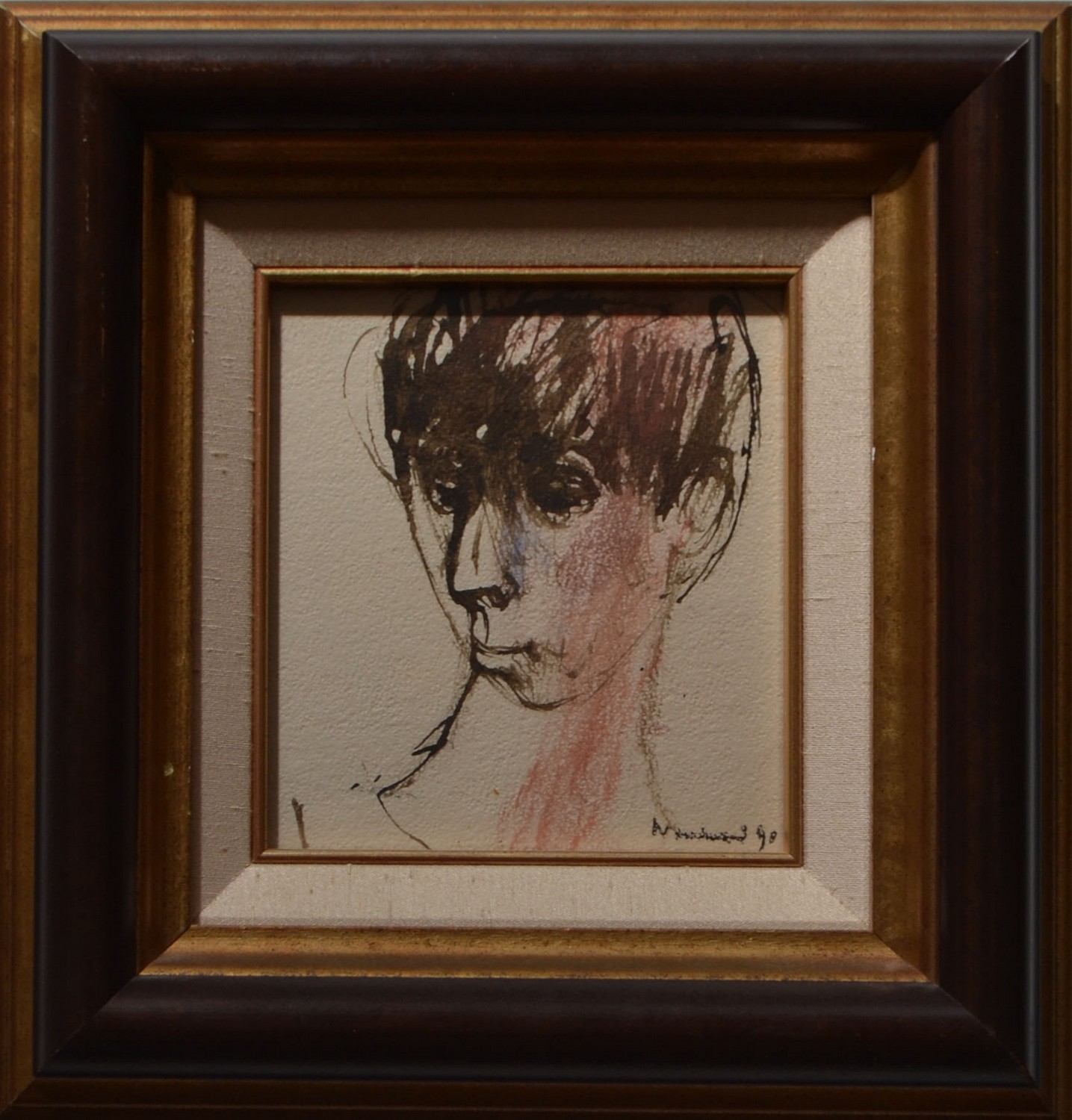 MARGARET WOODWARD, HEAD STUDY, MIXED MEDIA ON PAPER, 14.5 X 13CM, FRAME SIZE: 29 X 28CM, CONDITION: VERY GOOD. LEONARD JOEL DELIVERY SIZE: SMALL