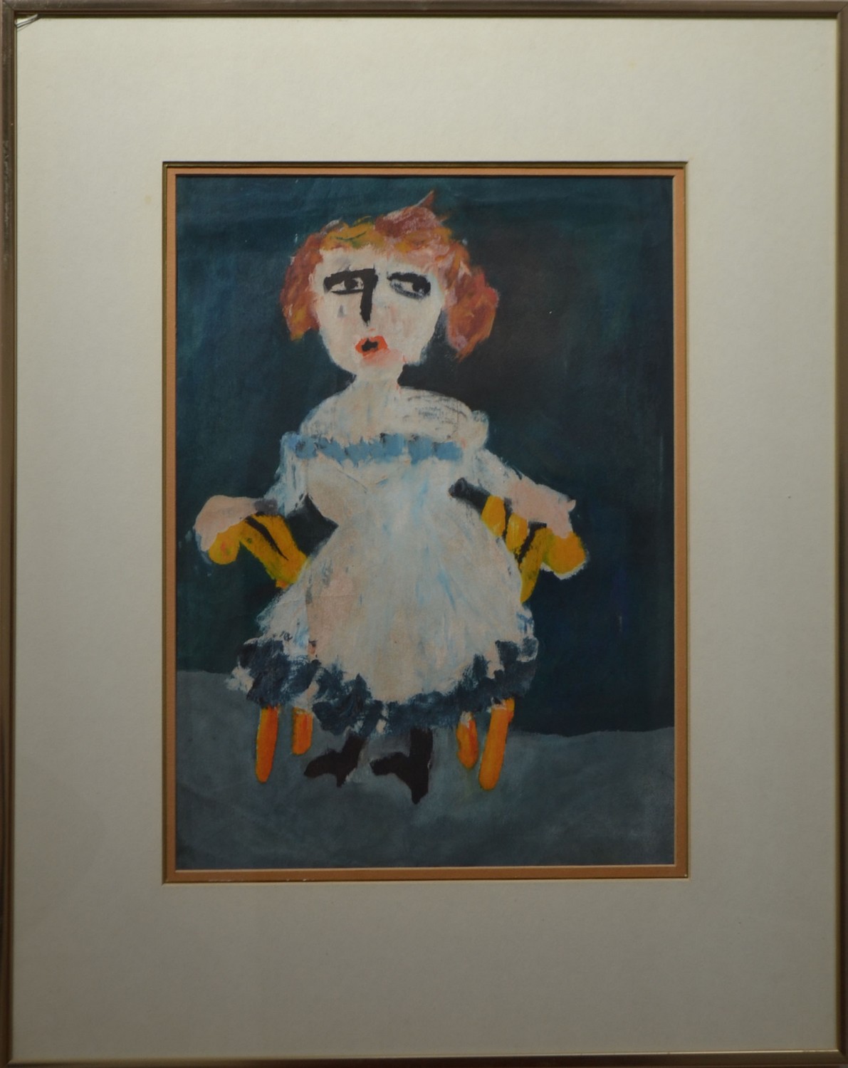 GEOFFREY PROUD, SEATED WOMAN WITH RED LIPS, GOUACHE ON PAPER, 33 X 24CM, FRAME SIZE: 51.5X 41CM, CONDITION: VERY GOOD. LEONARD JOEL DELIVERY SIZE: MEDIUM