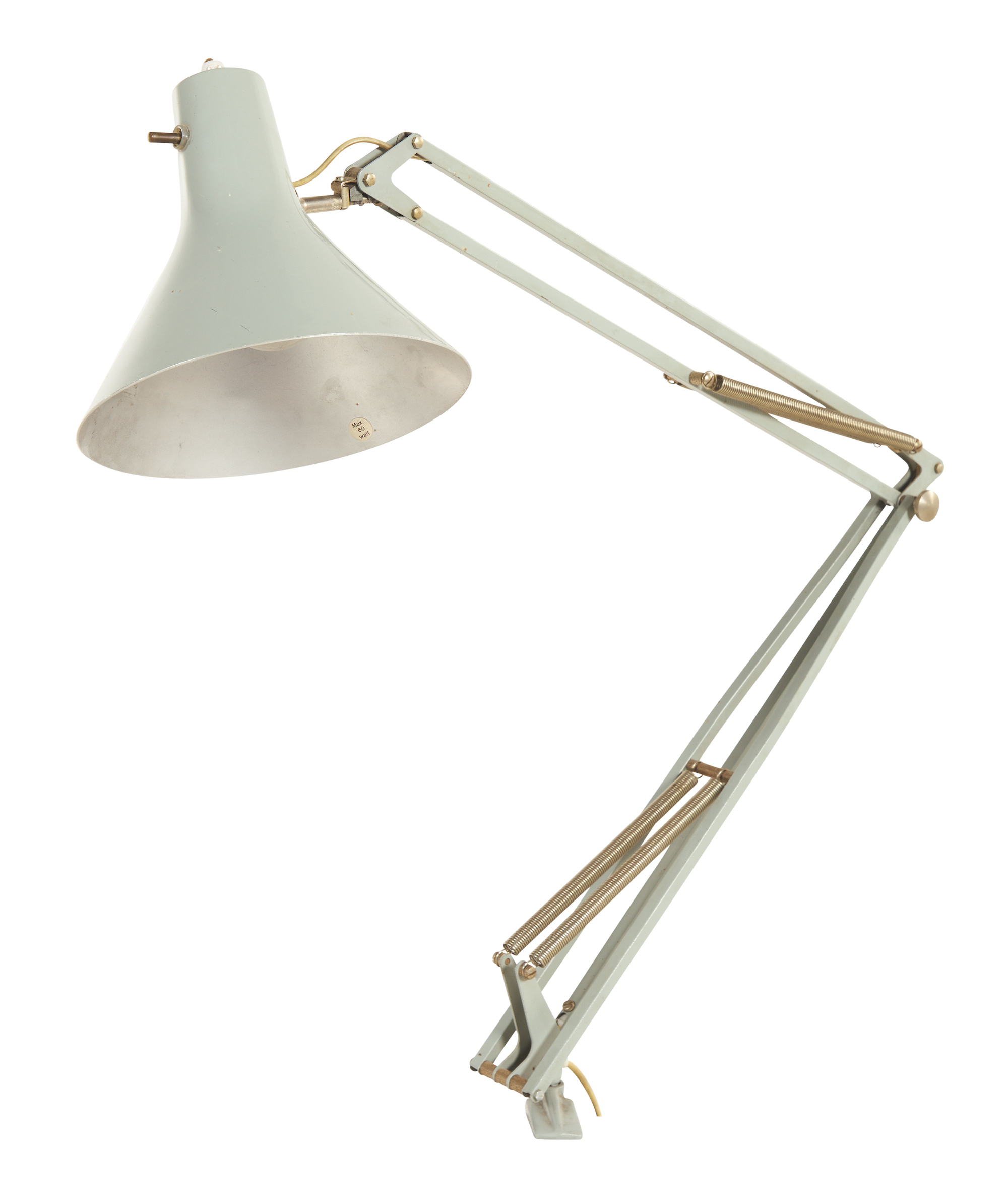 Powder coated in grey, adjustable with desk clamp
