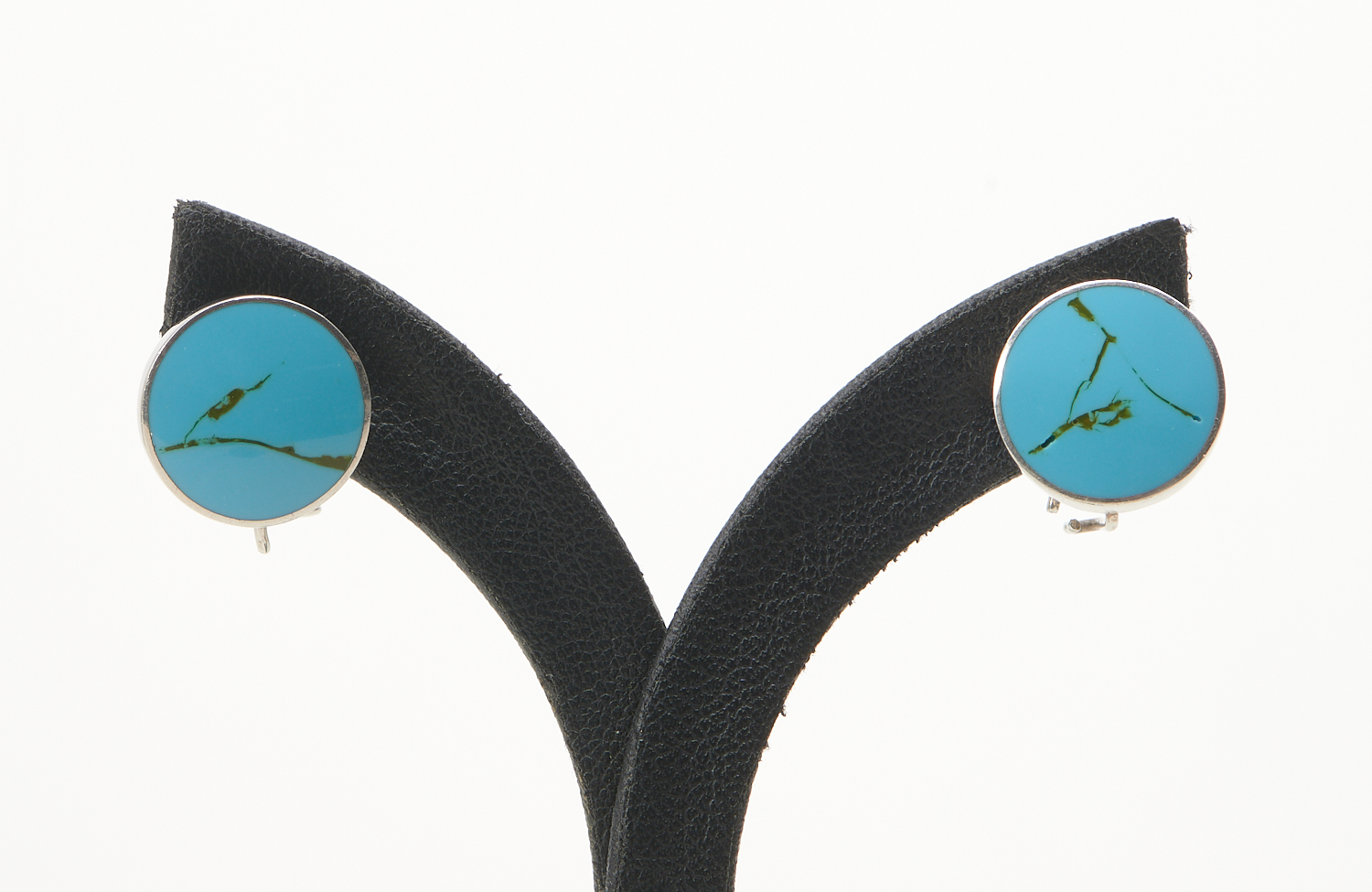 A PAIR OF TURQUOISE SET EARRINGS IN STERLING SILVER, DIAMETER 12MM