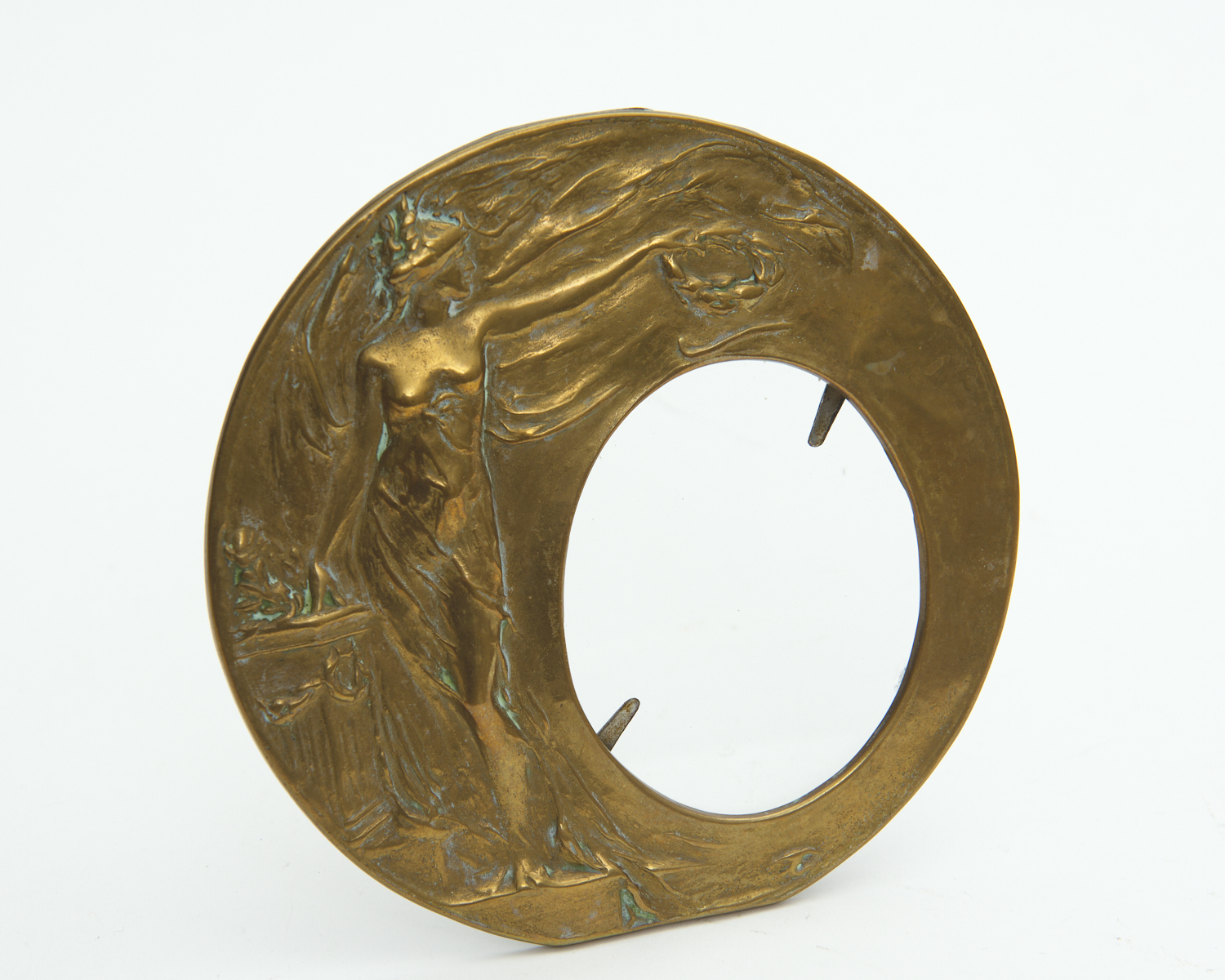 AN ART NOUVEAU CAST BRASS PHOTOGRAPH FRAME, 16 CM HIGH, LEONARD JOEL DELIVERY SIZE: SMALL
